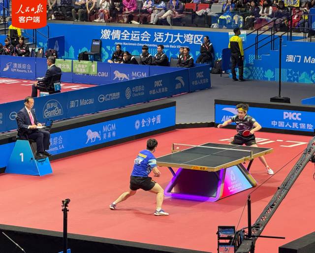 11月15日,十五运会乒乓球项目在澳门银河综艺馆展开两场男单半决赛争夺。