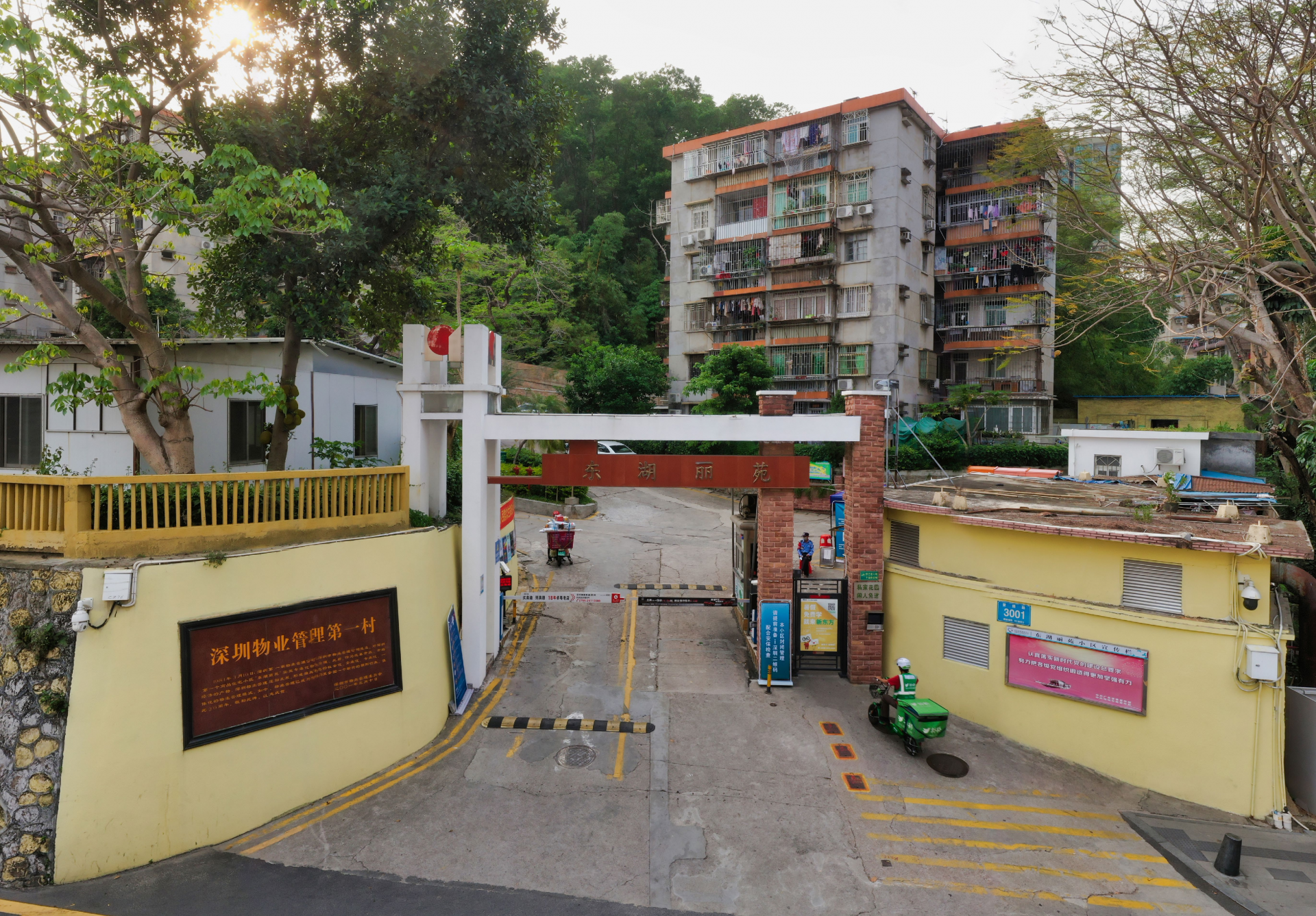 1981年7月,新中国第一个商品房小区东湖丽苑入伙,小区门口至今树有“中国物业管理第一村”标志牌。(图源:南兆旭)