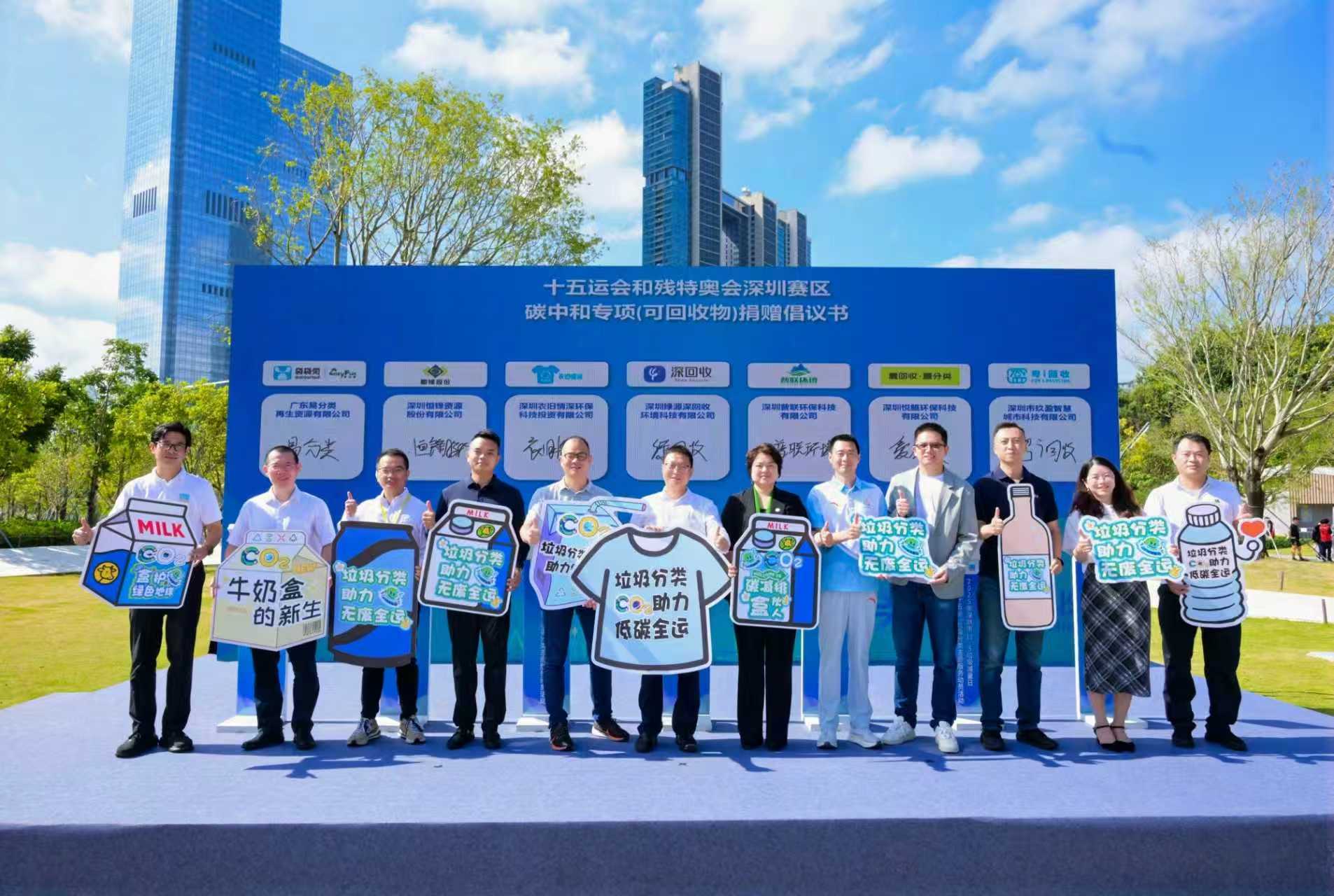 为将绿色成果直接赋能十五运会和残特奥会,活动特别设置碳减排量捐赠意向签约仪式。在市生态环境局与市城管和综合执法局的共同见证下,垃圾分类公益机构深圳市福田区零碳城市发展中心与十五运会和残特奥会深圳赛区执委会签订捐赠意向书,捐赠奶盒回收行动中产生的碳减排量给赛事碳中和项目,让“企业践行责任、学生参与环保、共同助力‘无废全运’”的场景生动落地。