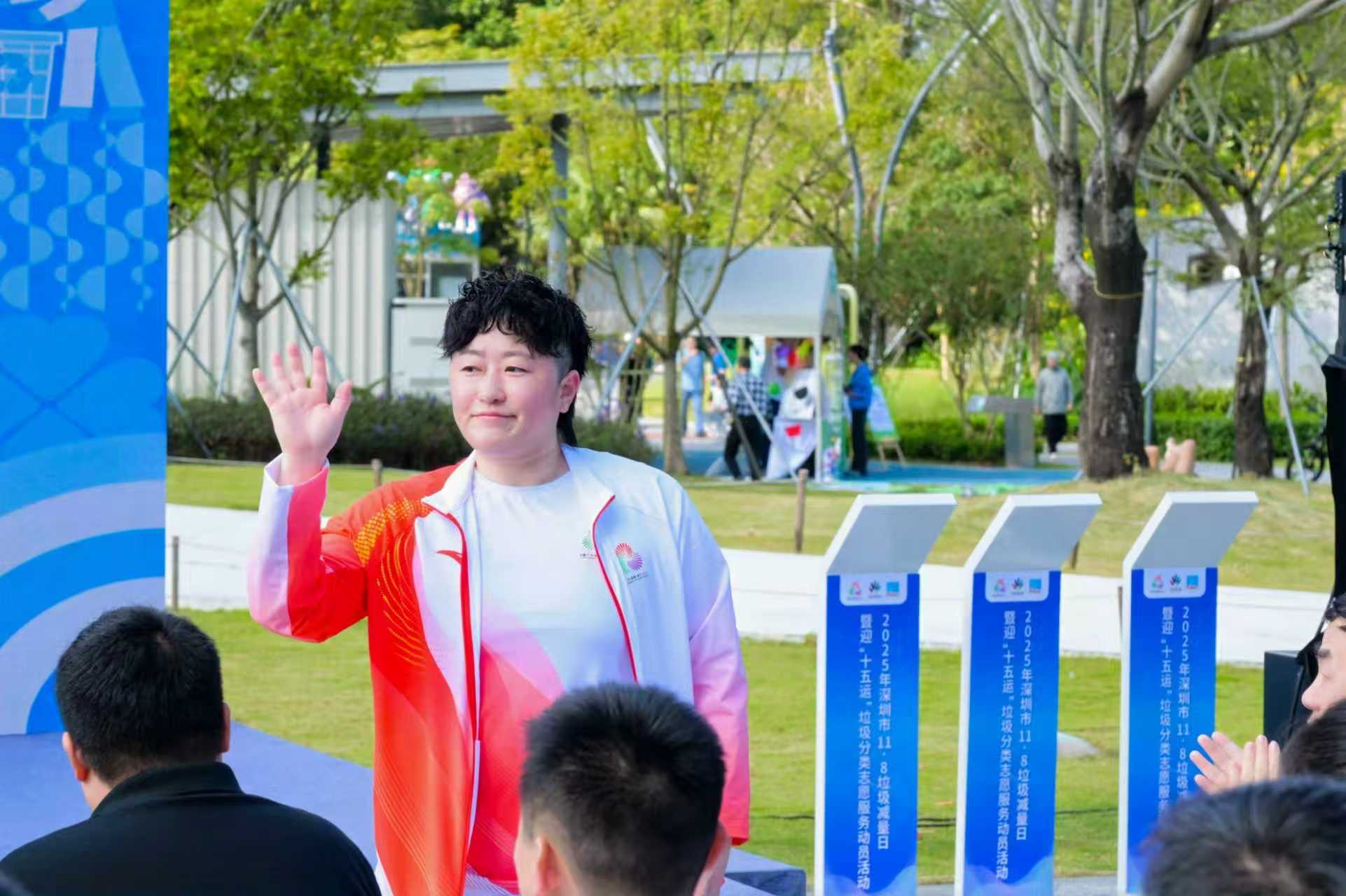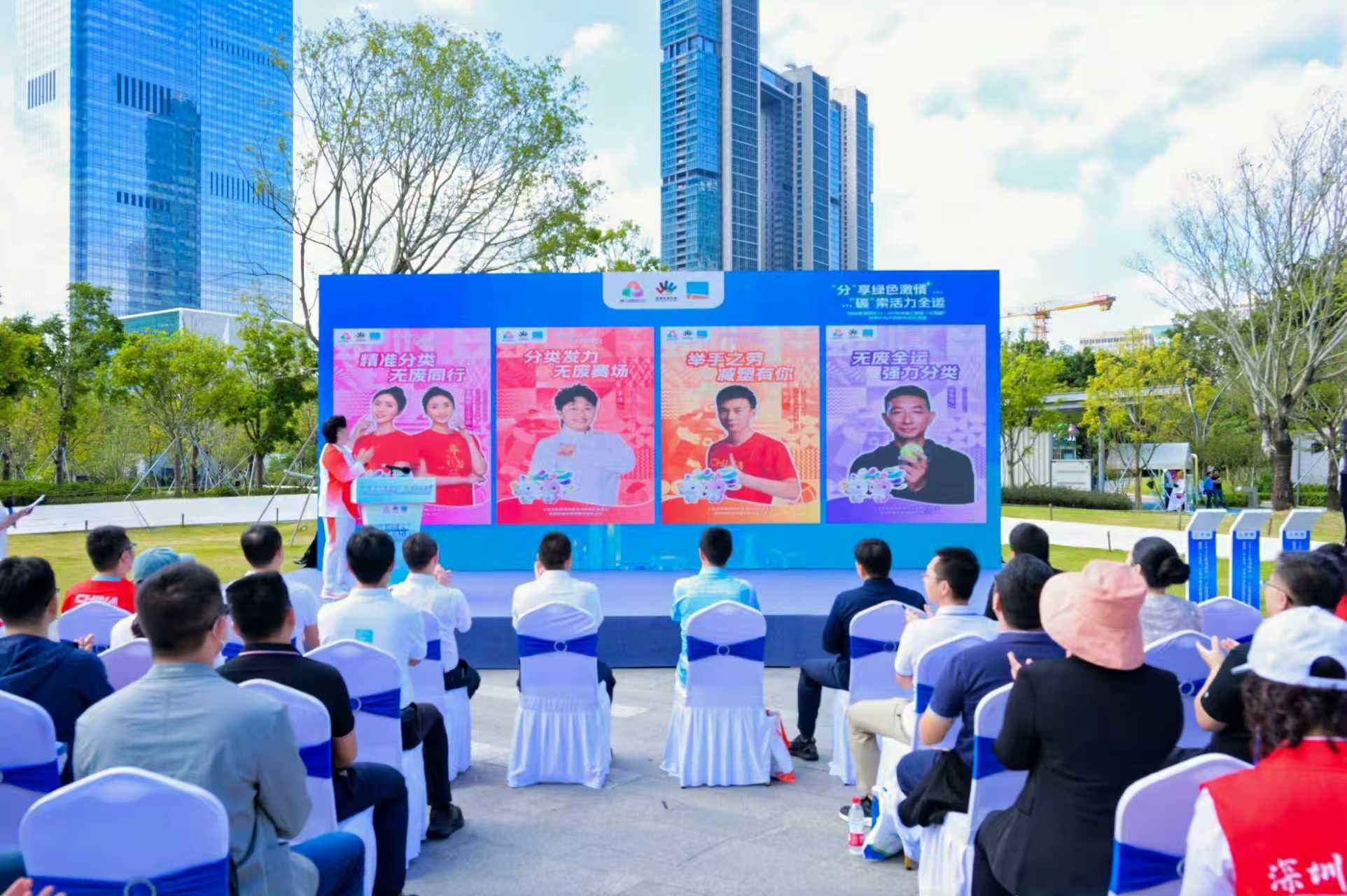 垃圾分类是深圳建设“无废城市”的重要举措,还是展现城市文明形象、助力迎“十五运”绿色办赛的对外窗口。活动现场,奥运会羽毛球女双冠军于洋代表运动员以及深圳垃圾分类推广大使发言并发布了迎“十五运”垃圾分类主题海报与宣传短视频,展现赛场上的运动激情与垃圾分类带来的绿色时尚,传递低碳环保的理念给更多的人。