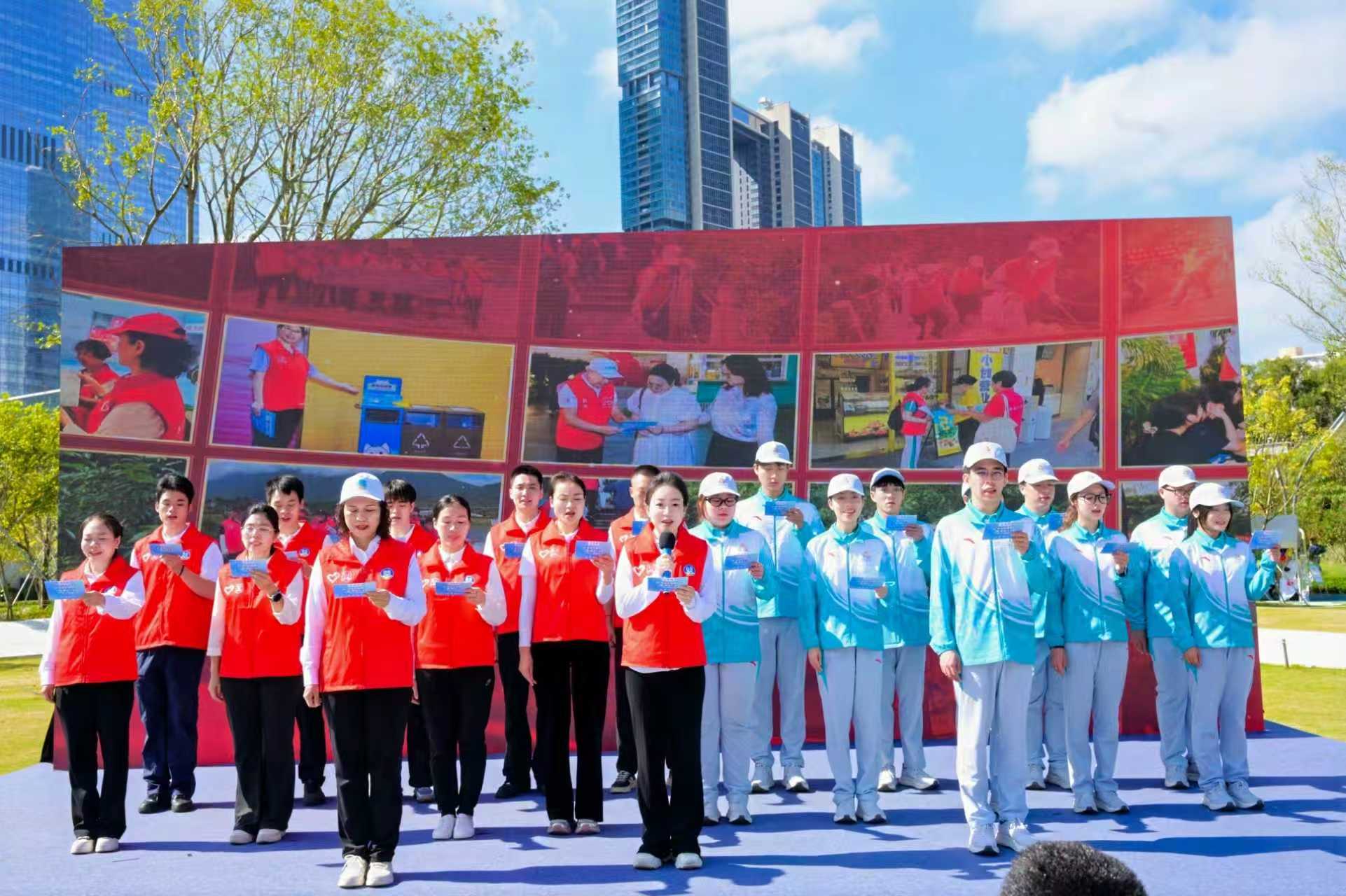 “我志愿成为‘十五运会’绿色先锋!积极引导文明观赛,认真落实垃圾分类!”伴随着响亮的倡议声,深圳市垃圾分类志愿服务总队代表关媛苑与10名赛会志愿者代表、10名城市志愿者代表齐声宣誓,以“绿色誓师”的形式吹响垃圾分类志愿服务的号角,号召全城赛会志愿者和城市志愿者行动起来,为“十五运会和残特奥会”做好赛事服务和保障。