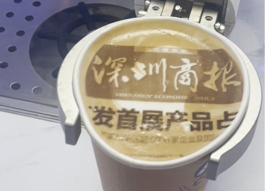 在高交会15号馆宝安区展区,一场“咖啡界的科技秀”正在上演。深圳本土机器人公司安诺机器人新品首发封闭式AI 拉花印花咖啡机器人。深圳商报·读创客户端记者使用这款机器人,仅用90秒,便在一杯热拿铁上,精准复刻出当天《深圳商报》头版与“读创”LOGO,引得国内外观众纷纷掏出手机:“这不是拿铁,这是可饮用的新闻!”
