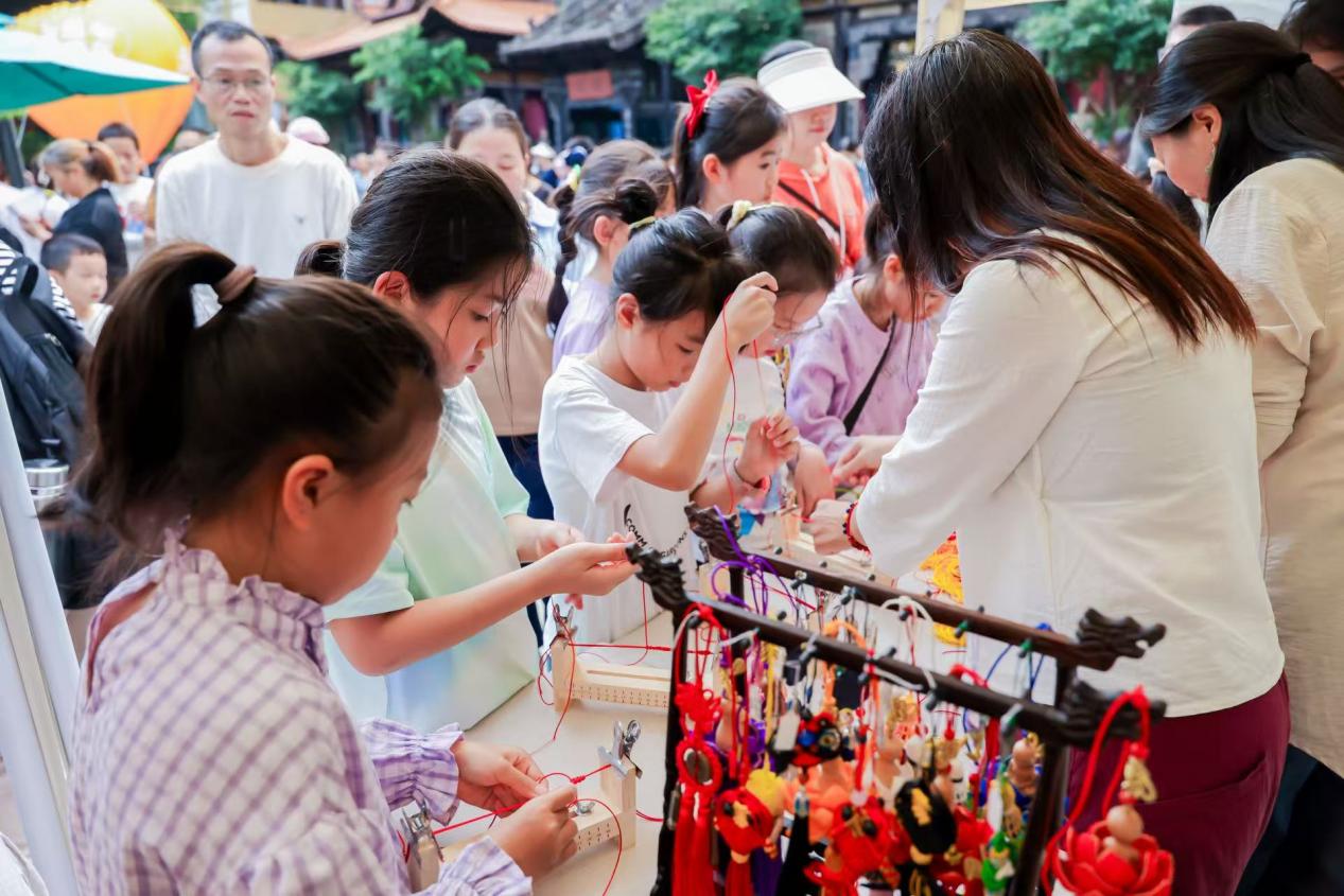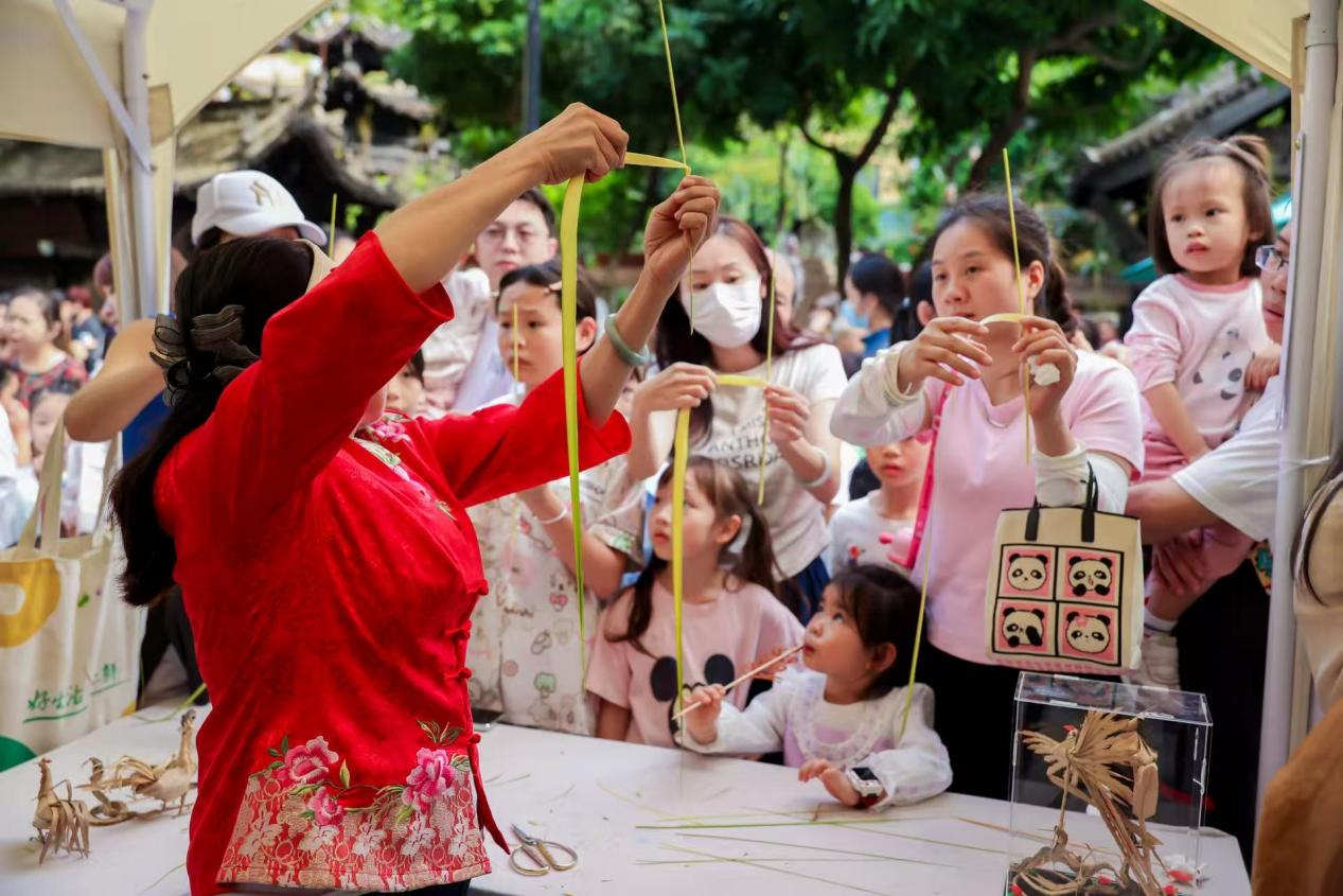 在竹笛的悠扬乐声中,十余个非遗摊位组成的“国潮市集”,非遗传承人坐镇授艺,让市民沉浸式解锁非遗乐趣,感受传统工艺的匠心与温度。