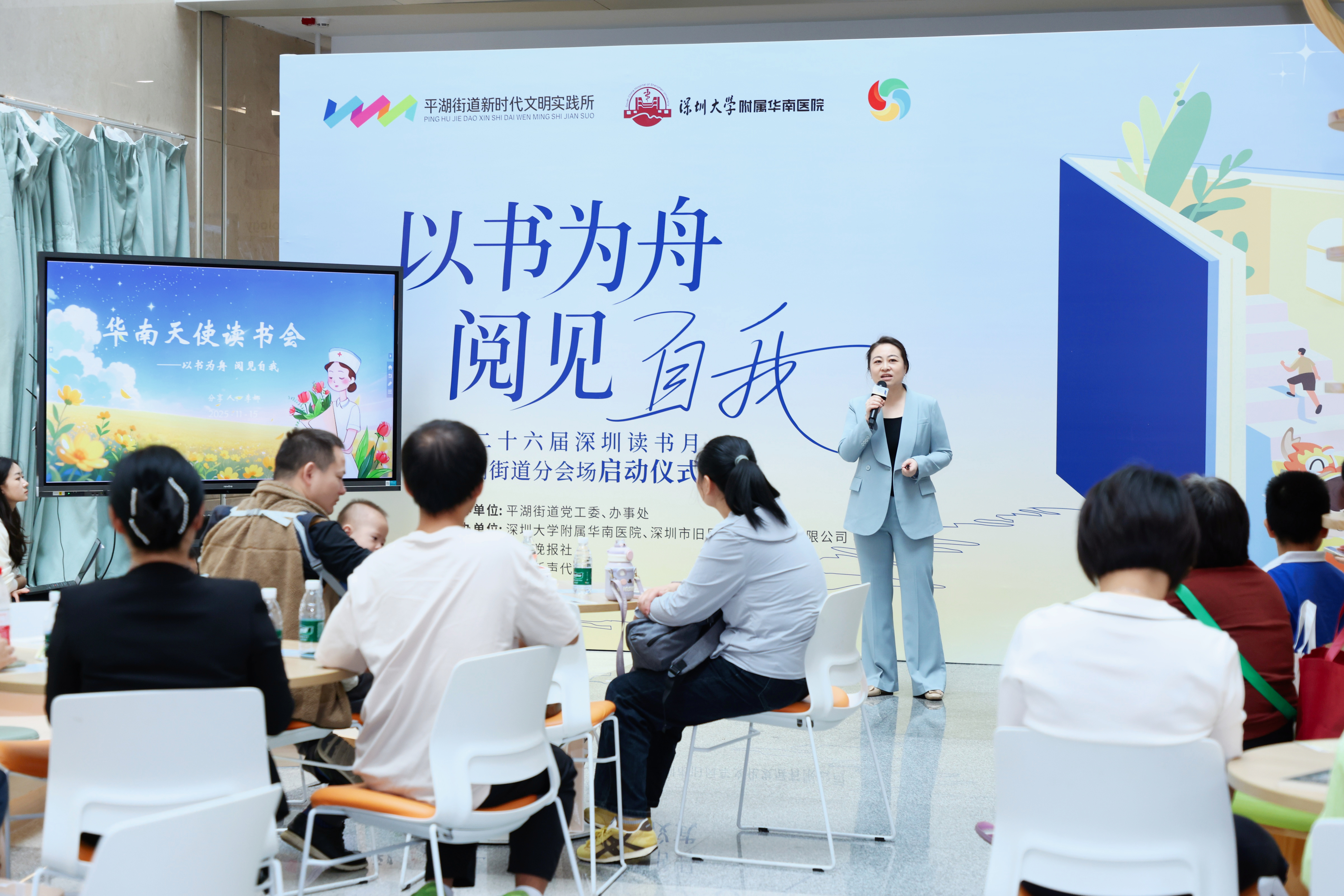 11月15日上午,深圳大学附属华南医院门诊一楼中庭暖意融融,第二十六届深圳读书月平湖街道分会场以“以书为舟,阅见自我”为主题正式启幕。这场融合阅读分享与心理健康服务的文化盛宴,让市民在书香中寻得心灵慰藉,更见证了华南“愈”书房的温暖亮相,为平湖街道全民阅读氛围注入全新活力。