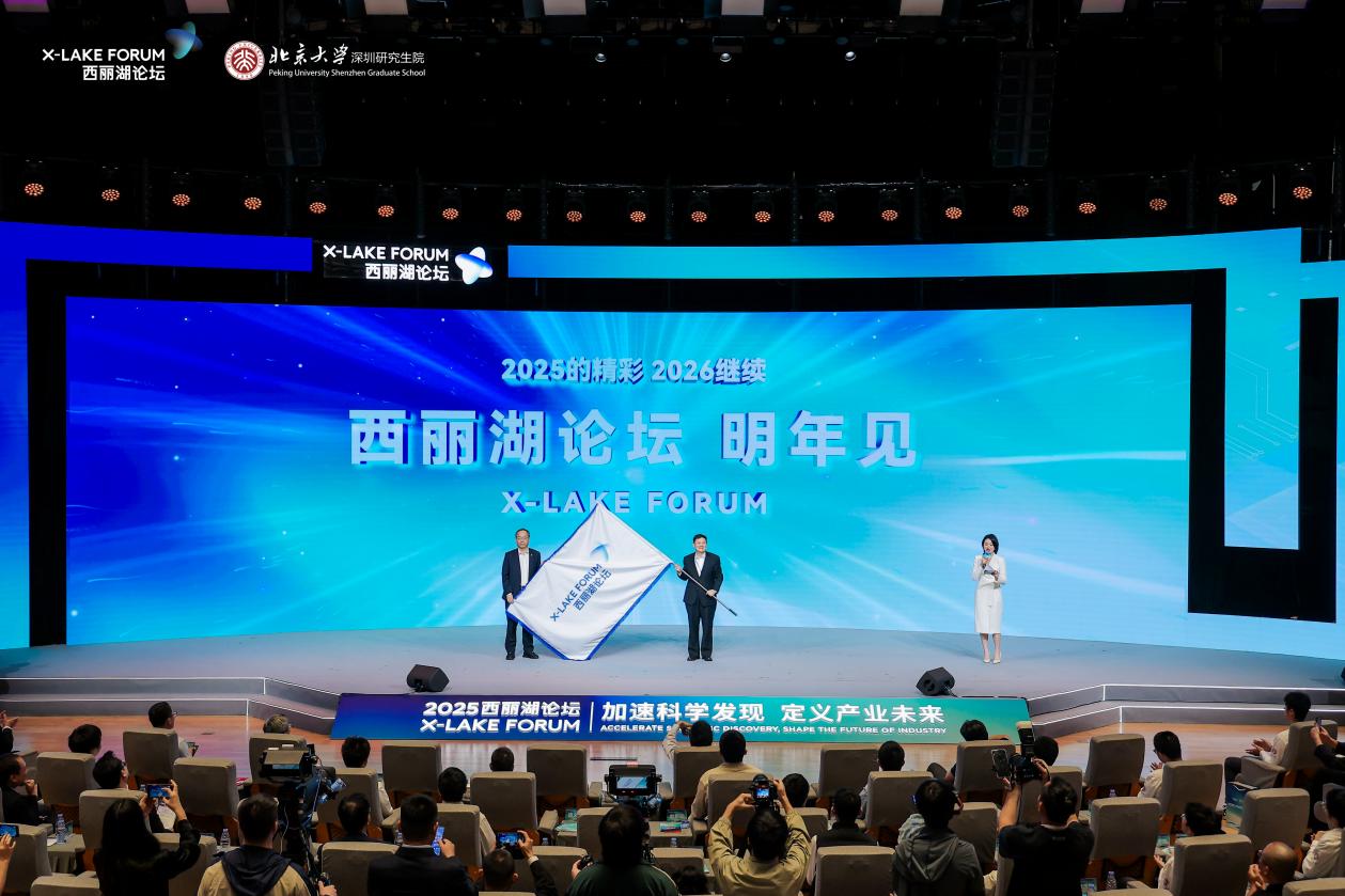 会上举行交旗仪式,张锦代表本届轮值理事长单位北京大学深圳研究生院,将X9联盟会旗交接至下一届轮值理事长单位哈尔滨工业大学(深圳)党委书记黄中。会旗的交接,标志着人工智能赋能科学研究与助力产业升级将在教育、科技与城市发展领域的影响将持续深化,并为西丽湖国际科教城产学研协同发展注入新动能。