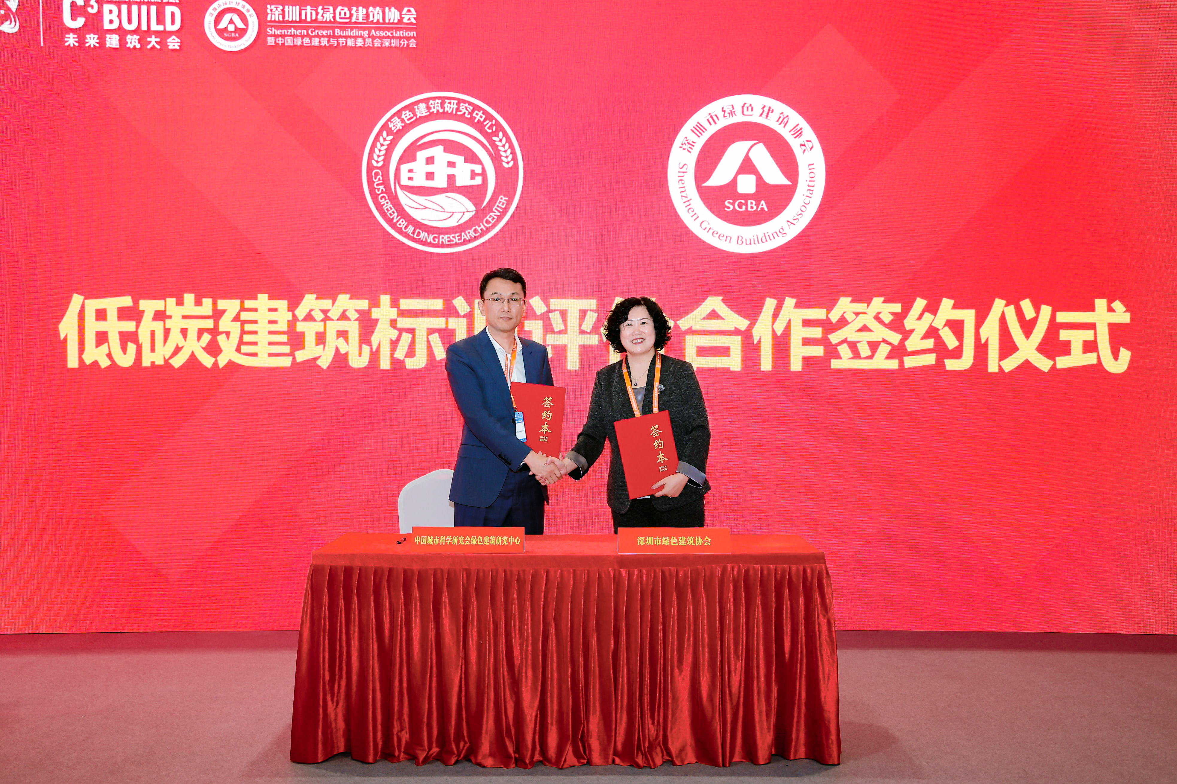 论坛期间,中国城市科学研究会绿色建筑研究中心与深圳市绿色建筑协会就低碳建筑标识评价合作进行签约,标志着深圳市绿色建筑协会正式具备在深圳及华南地区开展低碳及碳中和建筑评价的资质和能力,双方将共同推动深圳及华南地区低碳建筑的深入发展。