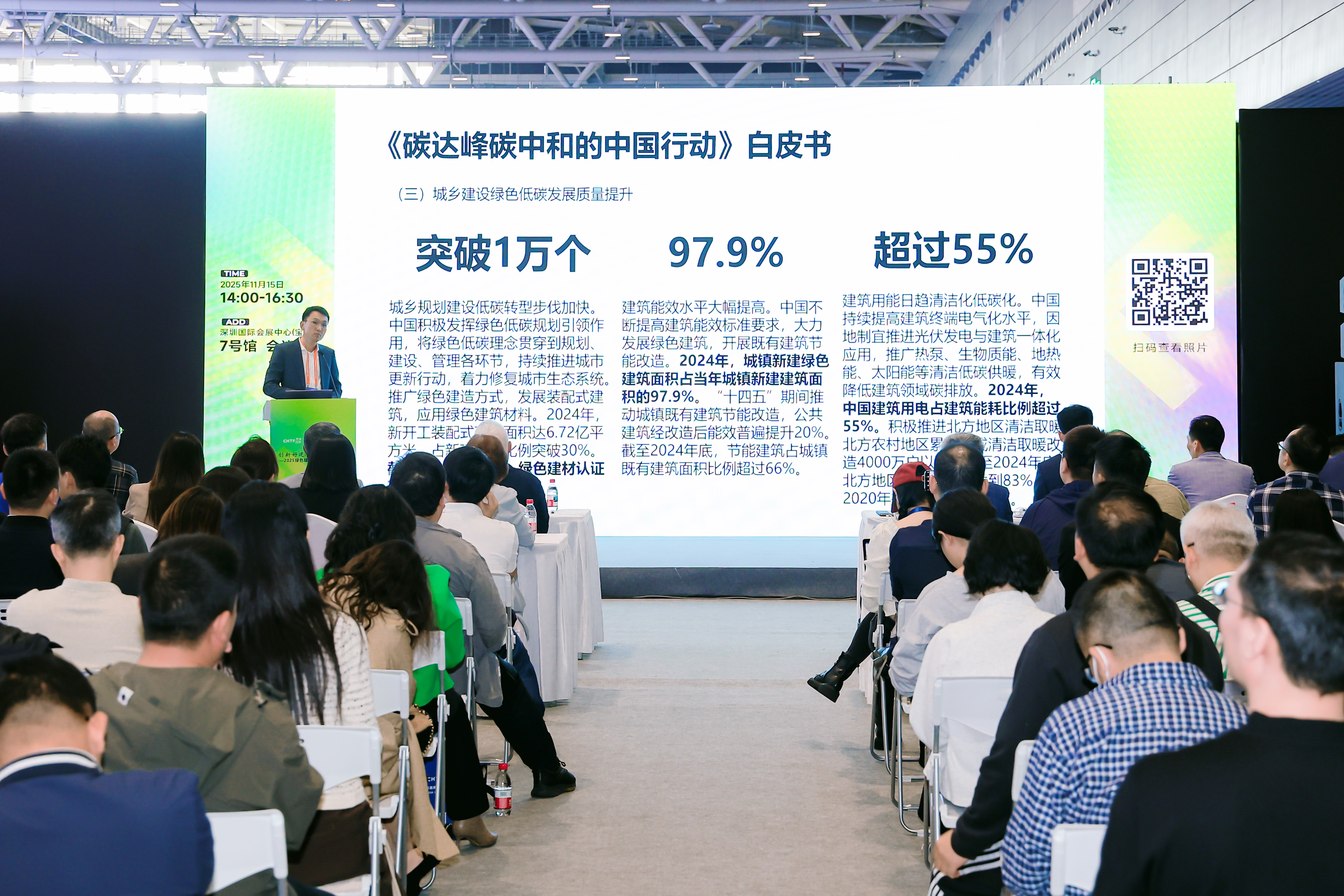 11月15日,以“创新好建材,品质好房子”为主题的2025绿色建筑高质量发展深圳论坛在第二十七届高交会C3未来建筑大会上举行。