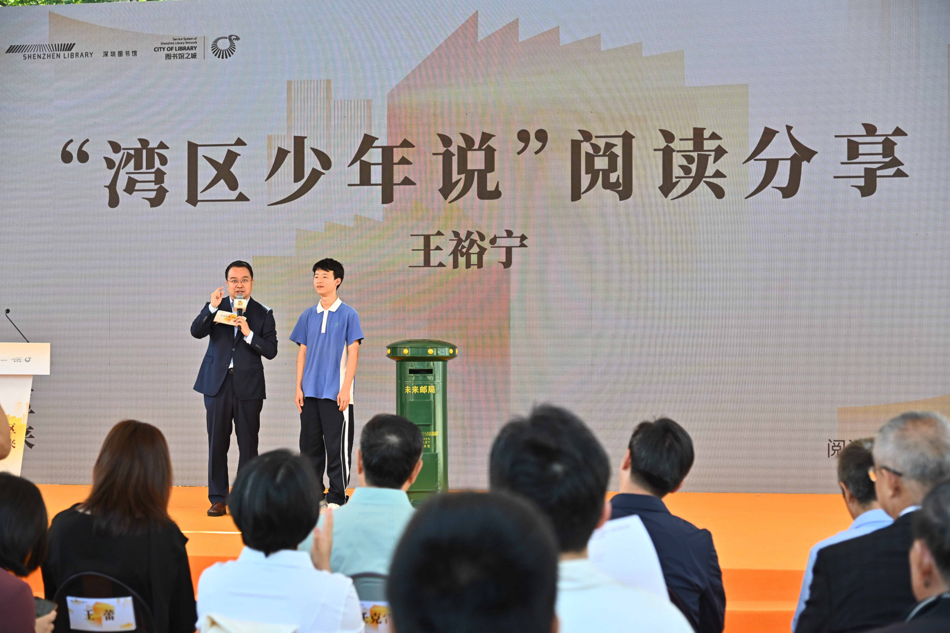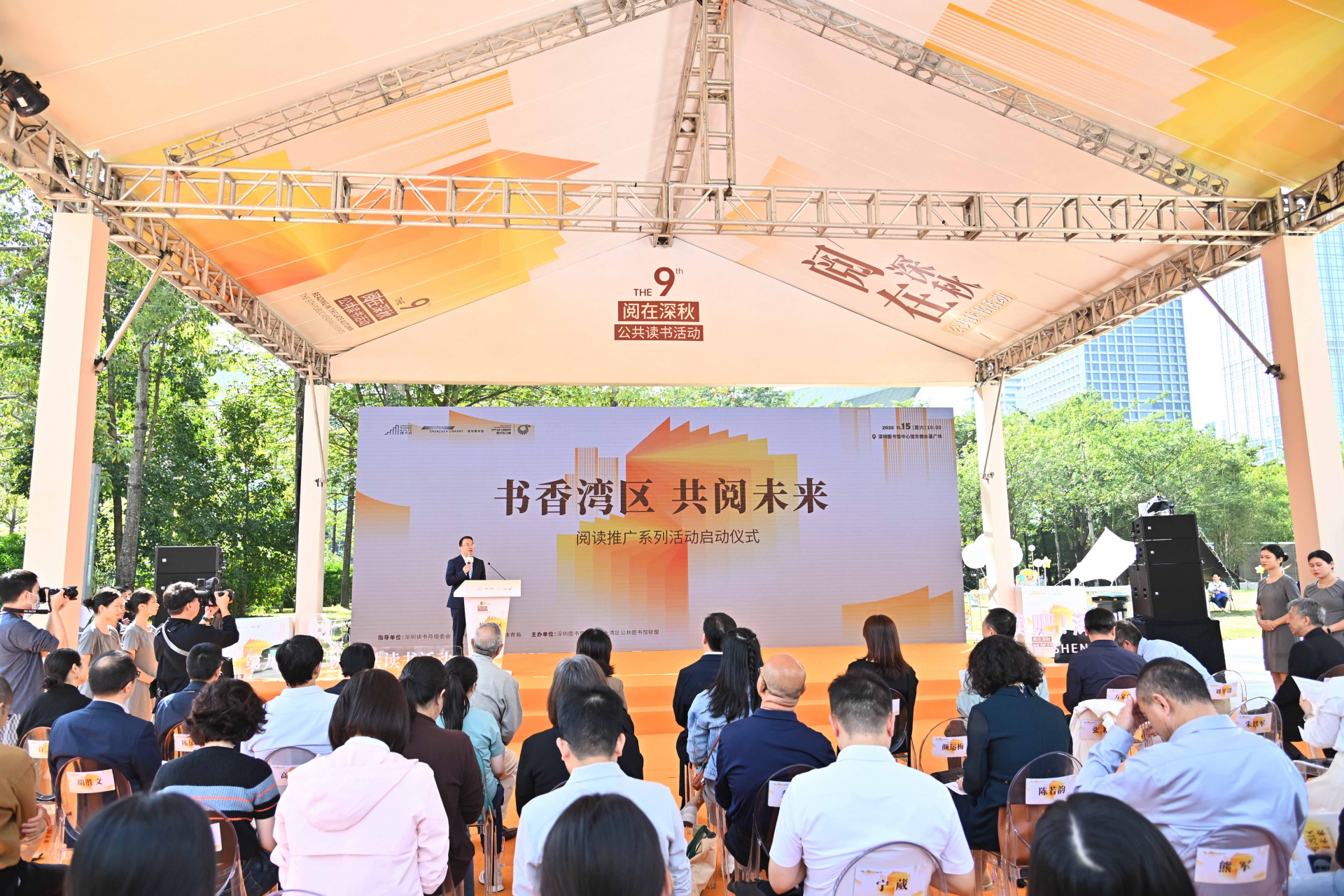 11月15日,由深圳读书月组委会、深圳市文化广电旅游体育局指导,深圳图书馆、粤港澳大湾区公共图书馆联盟主办的“书香湾区·共阅未来”阅读推广系列活动启动仪式在深圳图书馆中心馆水幕广场举行。