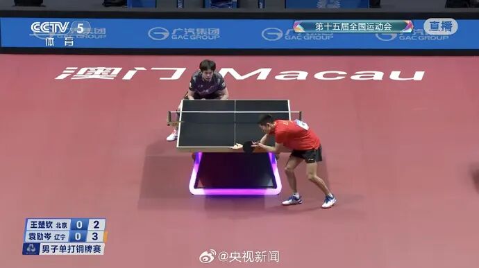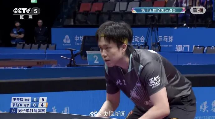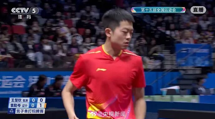 在刚刚结束的男单铜牌赛上,北京队选手王楚钦以4∶1(11-9,11-8,4-11,11-5,11-7)战胜辽宁队选手袁励岑,获得铜牌。