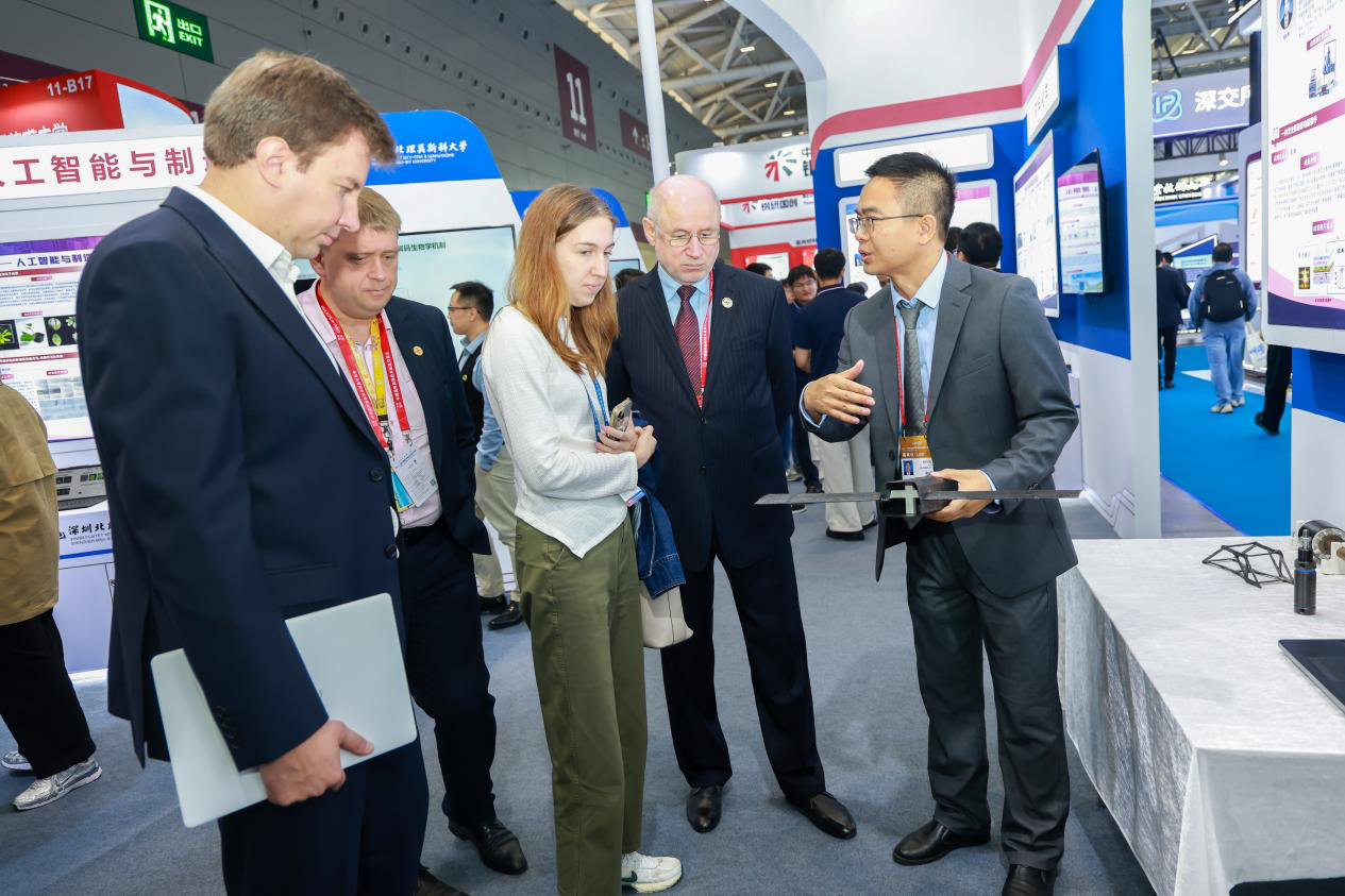 11月14日,第二十七届中国国际高新技术成果交易会(以下简称“高交会”)在深圳国际会展中心正式拉开帷幕。深圳北理莫斯科大学(以下简称“深北莫”)以“中俄合作特色、交叉融合创新”为主题,集中展示了50项具有中俄合作特色的科技创新成果,吸引了众多中外观众和媒体的广泛关注。同日下午,学校成功举办“产学研重大合作签约暨2025‘一带一路’国际产学研用合作会议”,现场完成15项中俄合作重点实验室、基地和校地、校企业合作签约,标志着学校研产学协同发展开启新篇章;在14日下午举办的第27届高交会“优秀科研成果创新奖”颁奖仪式中,深北莫共9项成果获“优秀科研成果创新奖”。