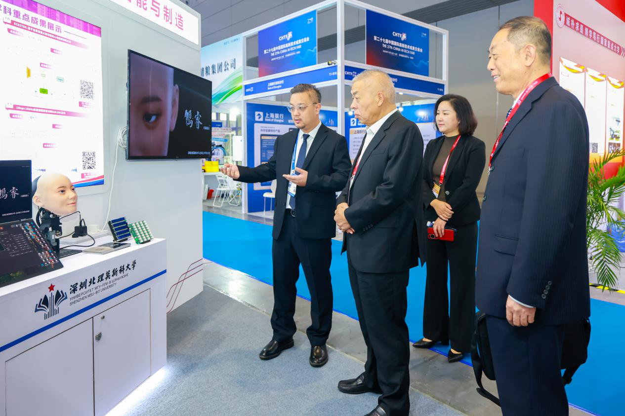 高交会期间,深北莫展出的50项创新成果覆盖材料与化学、人工智能与制造、数字经济、新能源、生物技术等多个领域,充分展现了学校在交叉学科融合与国际视野下的科研实力。展区中外访客人气火爆、互动频繁,成为高交会一大亮点。