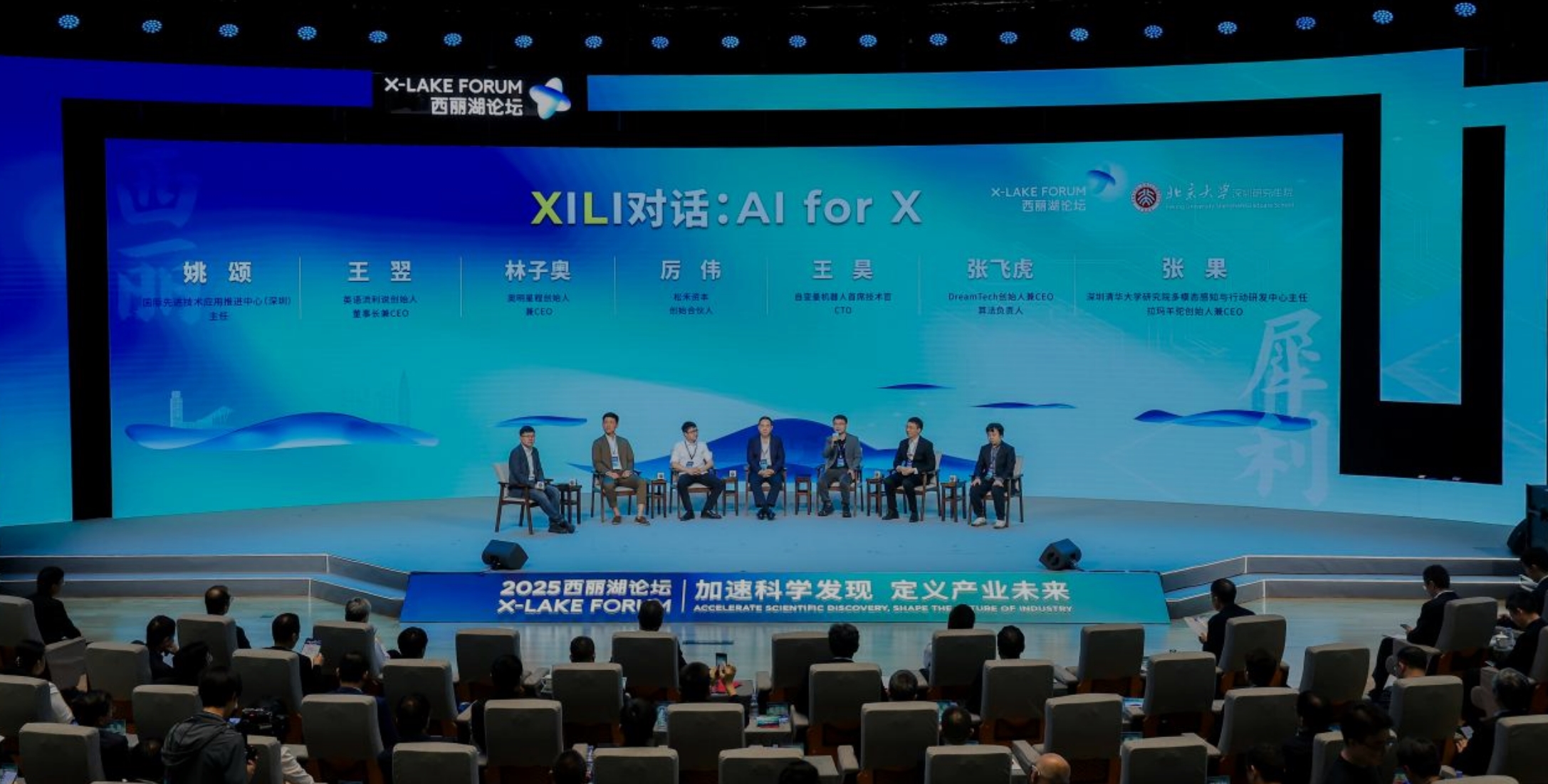 論壇以XILI(意指“西麗&犀利”)對話環節作為開場,以“AIforX”為主題,聚焦人工智能在不同行業的實踐前沿,系統梳理其賦能的應用邏輯與實施路徑。英語流利說創始人、董事長兼CEO王翌,奧明星程創始人兼CEO林子奧,松禾資本創始合夥人厲偉,自變量機器人首席技術官王昊,DreamTech創始人兼CEO、算法負責人張飛虎,深圳清華大學研究院多模態感知與行動研發中心主任,拉瑪羊駝創始人兼CEO張果擔任嘉賓,共同探討AI將如何重塑未來的科技與產業生態,並為企業與個人指明抓住機遇、應對挑戰的具體路徑,從而共同引領智能時代的變革。本環節由國際先進技術應用推進中心(深圳)主任姚頌主持。