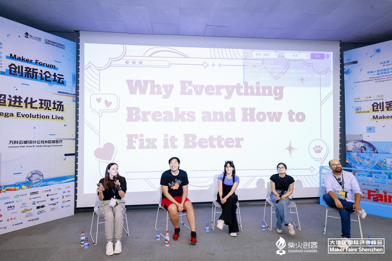 随后,YouTuber兼电气工程师Allen Pan、计算机科学家兼工程师Estefannie、发明家兼内容创作者Ruth Amos、创意工程师兼内容创作者Shay Rose进行了一场主题为《拆、坏、修——创客的快乐真相》的创造者对谈。他们分享了在不断试错过程中,如何重新发现创造的原始乐趣与深层意义,进而转化为一段全新创造旅程的起点。