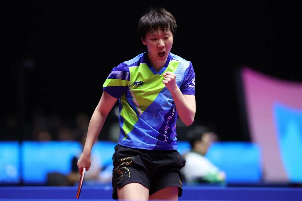 11月16日晚,第十五届全运会女子单打金牌赛在澳门银河综艺馆上演,孙颖莎与王曼昱展开较量。经过一番激战,王曼昱4比2击败对手,获得金牌。