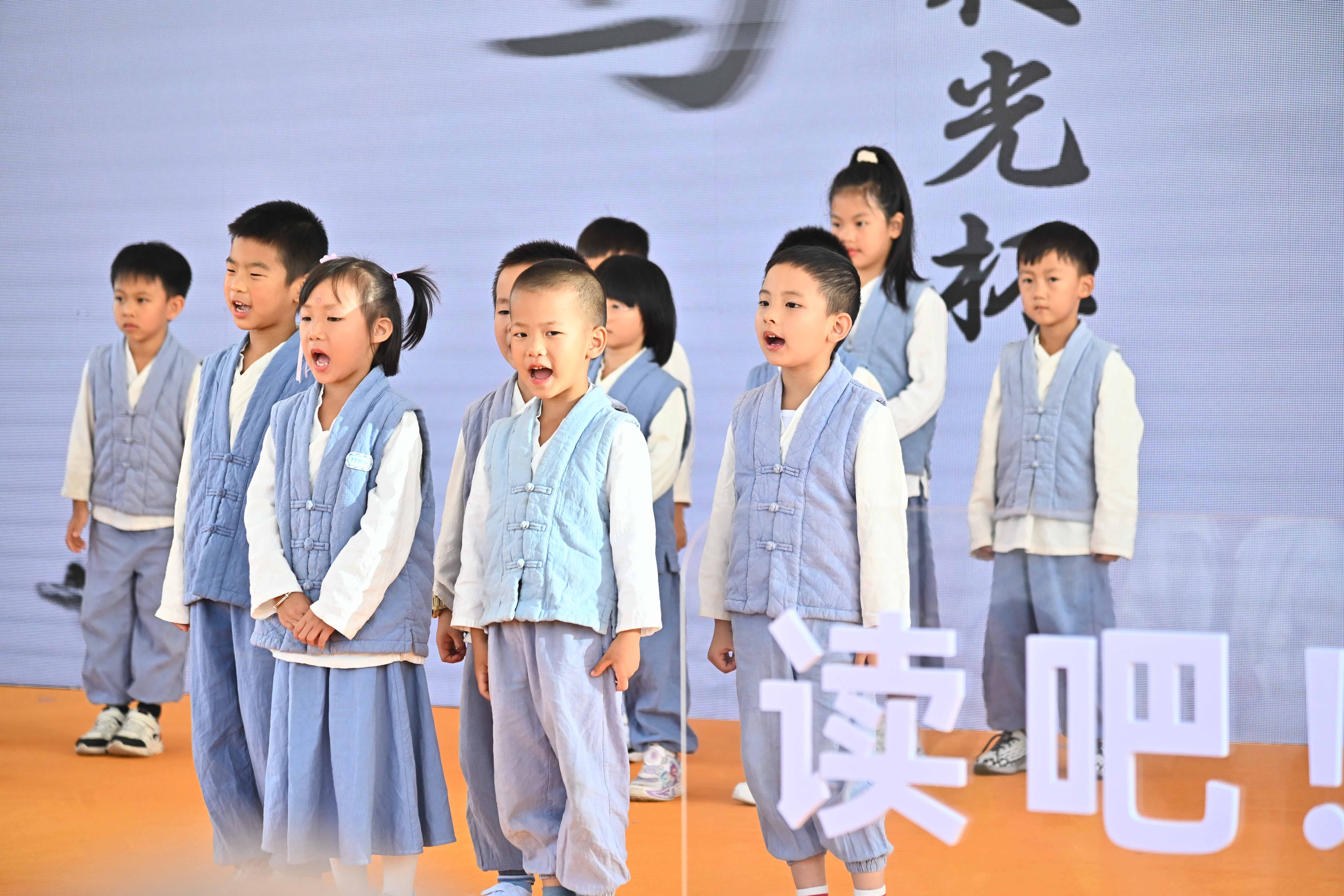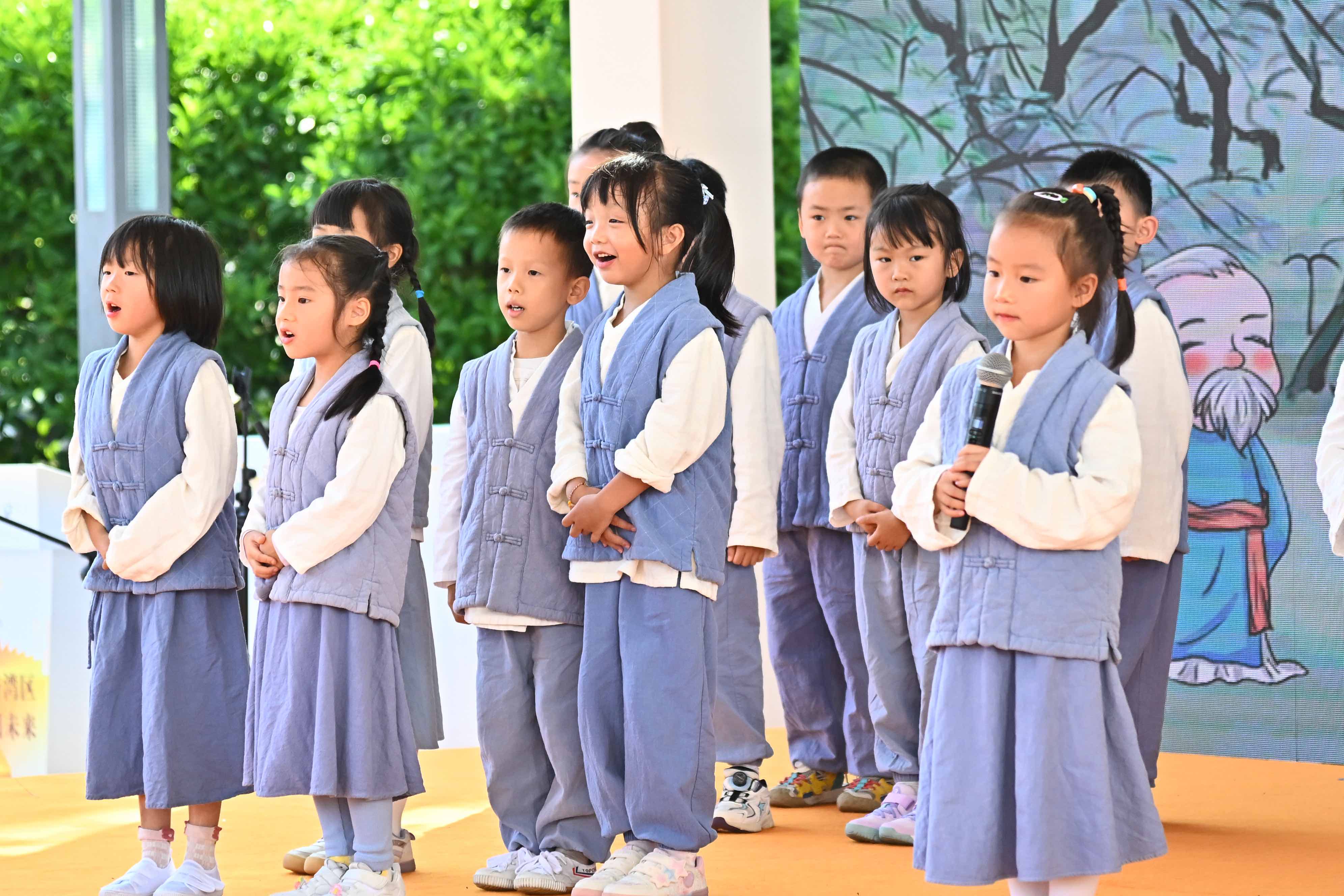 11月15日,作为第26届深圳读书月十大重点活动之一、“图书馆之城”系列活动首推项目的第九届“阅在深秋”公共读书活动,在深圳图书馆中心馆水幕广场正式启幕。11月16日上午10时,作为受邀幼儿园代表,春诵园携特色传统文化展演登台,为这场紧扣“AI时代 爱阅读”年度主题的全市性阅读活动注入童真活力。