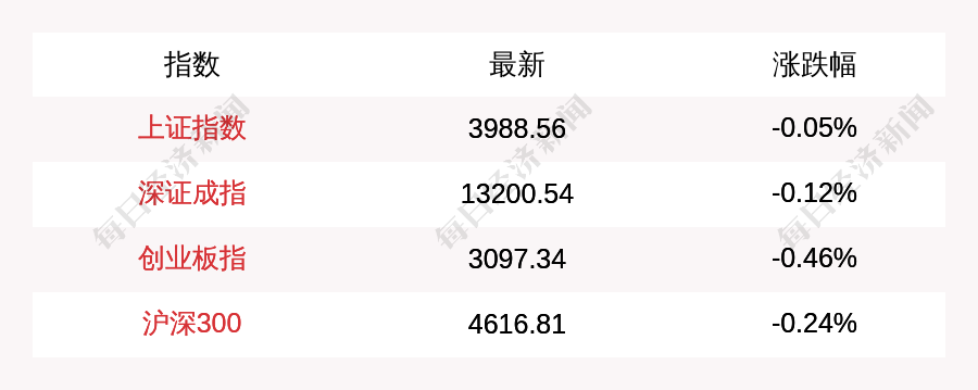 11月17日,A股三大股指集体低开。上证指数开盘跌1.93点,跌幅为0.05%,报3988.56点;深证成指开盘下跌15.49点,跌幅为0.12%,报13200.54点;创业板指开盘下跌14.17点,跌幅为0.46%,报3097.34点;沪深300开盘下跌11.33点,跌幅为0.24%,报4616.81点。