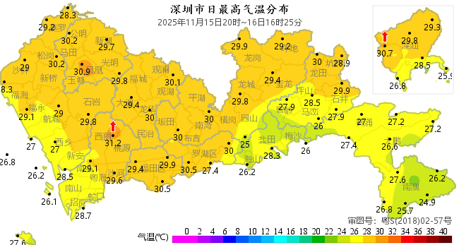 据深圳天气最新预报,今天我市晴天间多云;气温20-29℃;东北风3级,沿海、高地和海区阵风6级;相对湿度45%-90%。