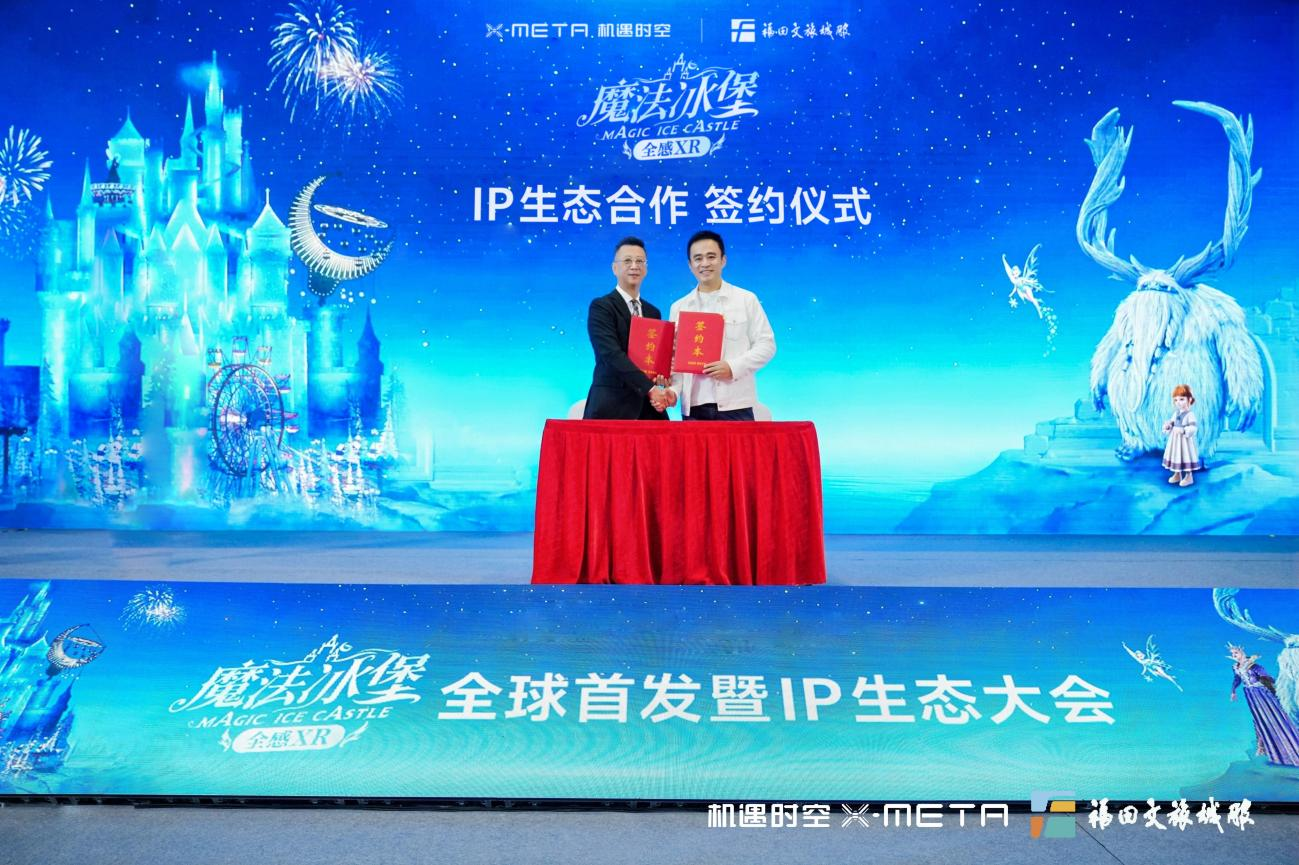 此次发布不仅是单一产品的亮相,更是机遇时空X-META构建完整IP生态的宣言。经过多年积累,公司已形成涵盖IP开发、软件研发、硬件智造、产品发行与门店运营的综合能力矩阵。发布会上,X-META携手多方合作伙伴,正式启动了《魔法冰堡》IP生态合作计划,并完成了多项重大战略签约,共同推动该IP在文旅、潮玩、餐饮、日用等领域的授权合作与产品化发展,标志着其从“全感XR产品”到“IP多业态共创”的产业新生态正式起航。