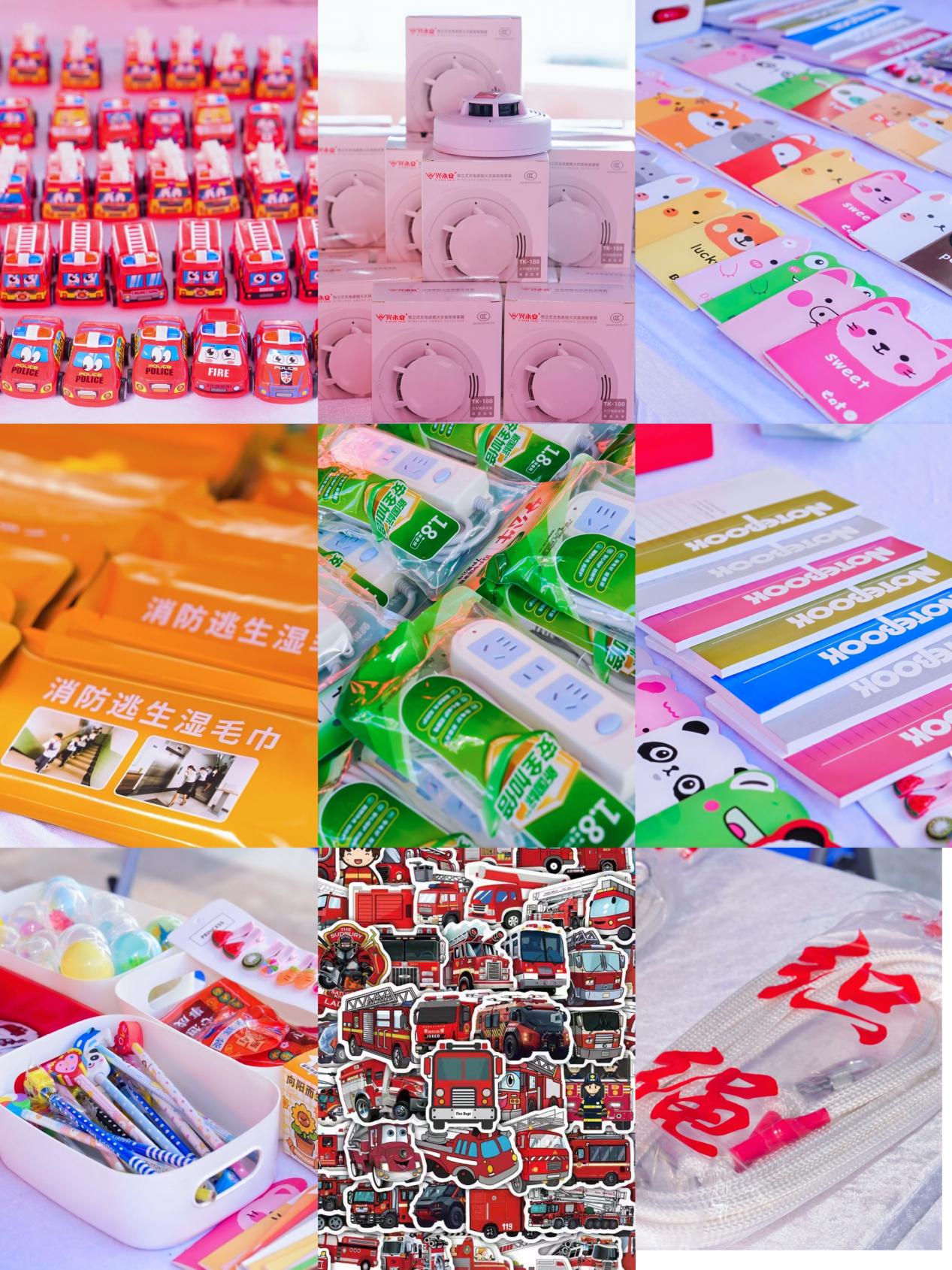 热烈的参与最终转化为实实在在的安全保障。通过集章打卡,现场开展的“消防小知识有奖问答”等环节,活动共计兑换出近300份宣传品。这些礼品经过精心设计,旨在将社区公共安全延伸至家庭私人空间。公牛排插、独立式烟感报警器、灭火毯、消防逃生湿毛巾等物品,直接助力提升家庭消防水平;而创意文具和消防主题玩具贴纸则深受孩子们喜爱,让消防安全的种子在下一代心中生根发芽。