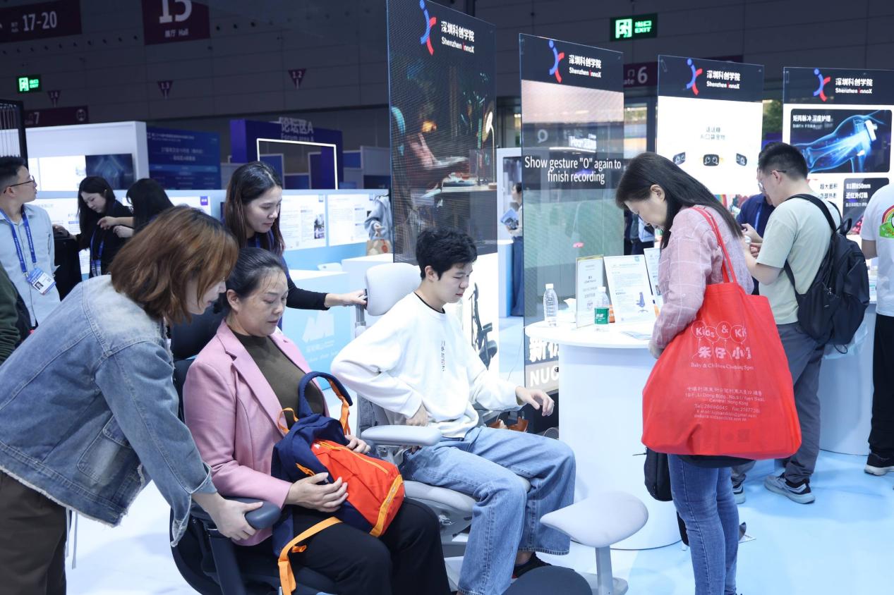 科创学院展区创意迸发,由清闲智能创新(深圳)有限公司带来的全球首款动态人机工学椅引起围观;零动未来的“话话糖AI口袋宠物”开创儿童陪伴新形态;Redbat的医疗无人机和RESIN实验室的AI线材回收机,则展示了解决实际问题的科技力量。