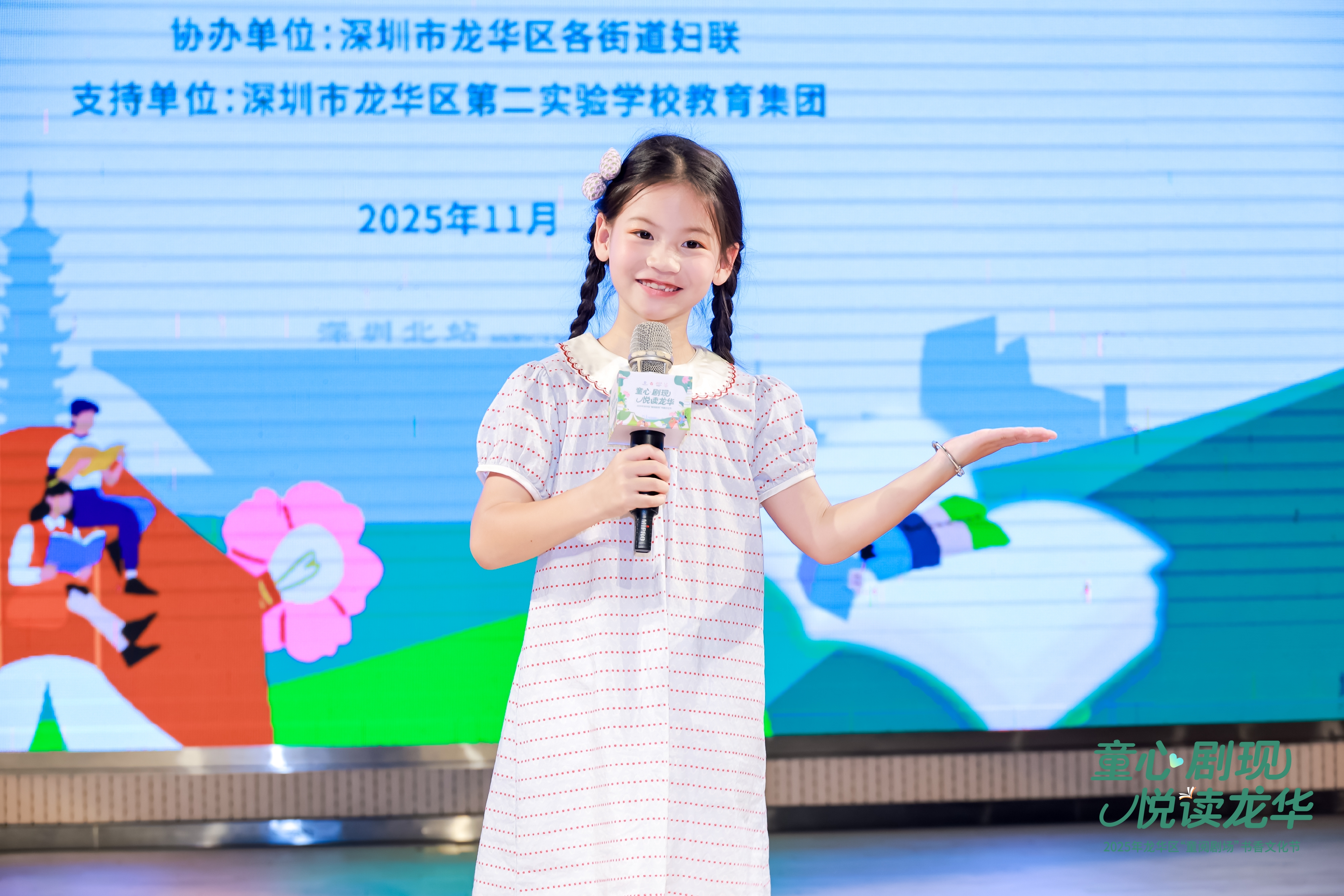 金秋时节,深圳龙华书香弥漫。11月17日下午,由龙华区妇女儿童工作委员会主办,龙华区妇女联合会、龙华区教育局承办的2025年龙华区“童阅剧场”书香文化节展演活动在龙华第二实验学校礼堂启幕。伴随着情景剧《花木兰》的铿锵台词与朗诵《大自然的声音》的轻柔回响,历时三个多月的阅读创意盛宴在这一天迎来高潮。从线上角逐中脱颖而出的“小小领读人”站上舞台中央,接过荣誉证书,发出阅读倡议,更用真挚的演绎点亮了属于他们的“阅读之光”。