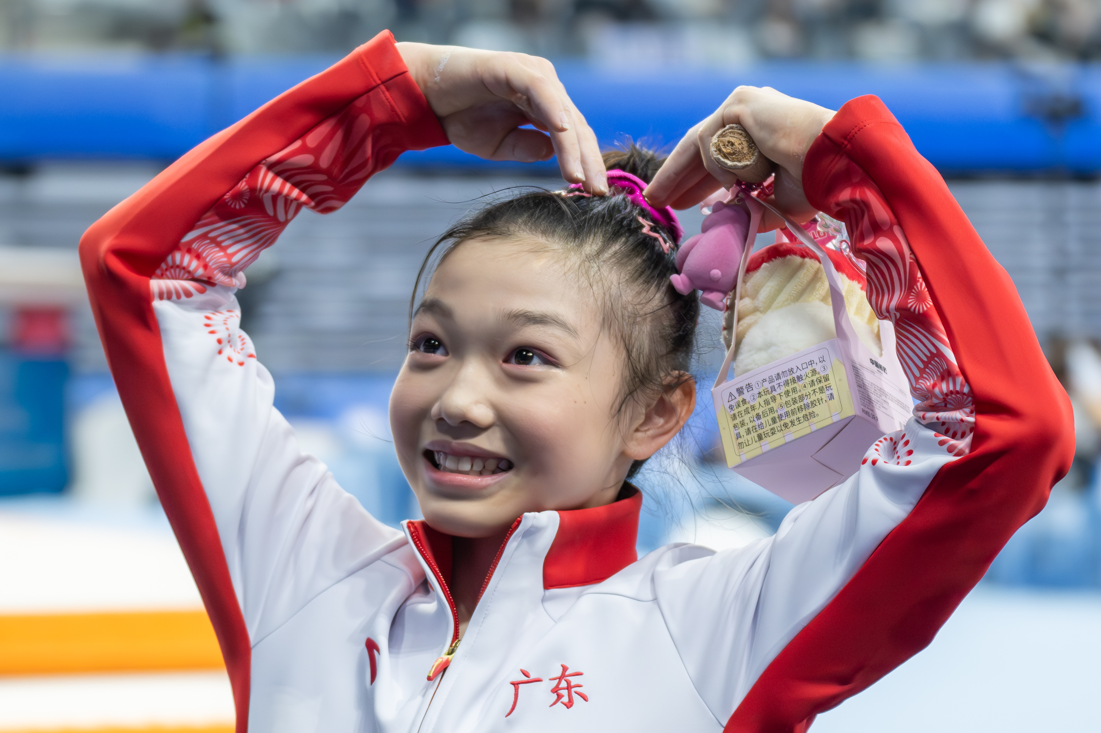此前,她在青年组收获了女子个人全能、高低杠平衡木跳马全能、女子团体金牌,成为十五运会竞体项目第一位“三金王”,同时还在成年组收获个人全能金牌。这位年仅15岁的小姑娘第一次参加全运会就收获了5金2银,成为“五冠王”。