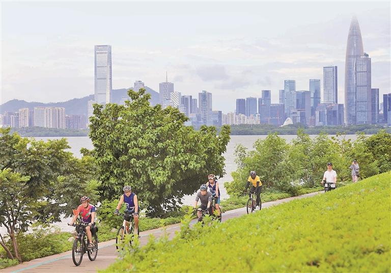 ▲市民在深圳湾公园骑行(资料图)。深圳晚报记者 陈玉 摄