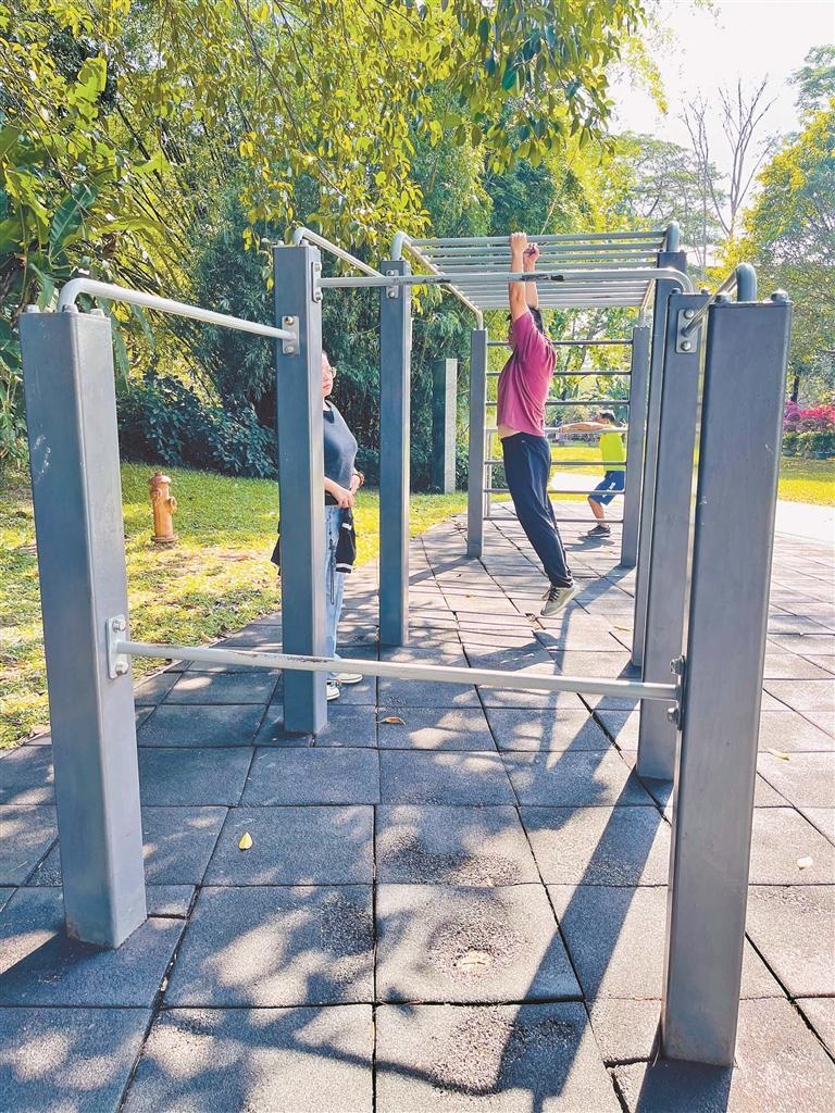 ▲市民在公园运动健身。 深圳晚报记者 伊宵鸿 摄