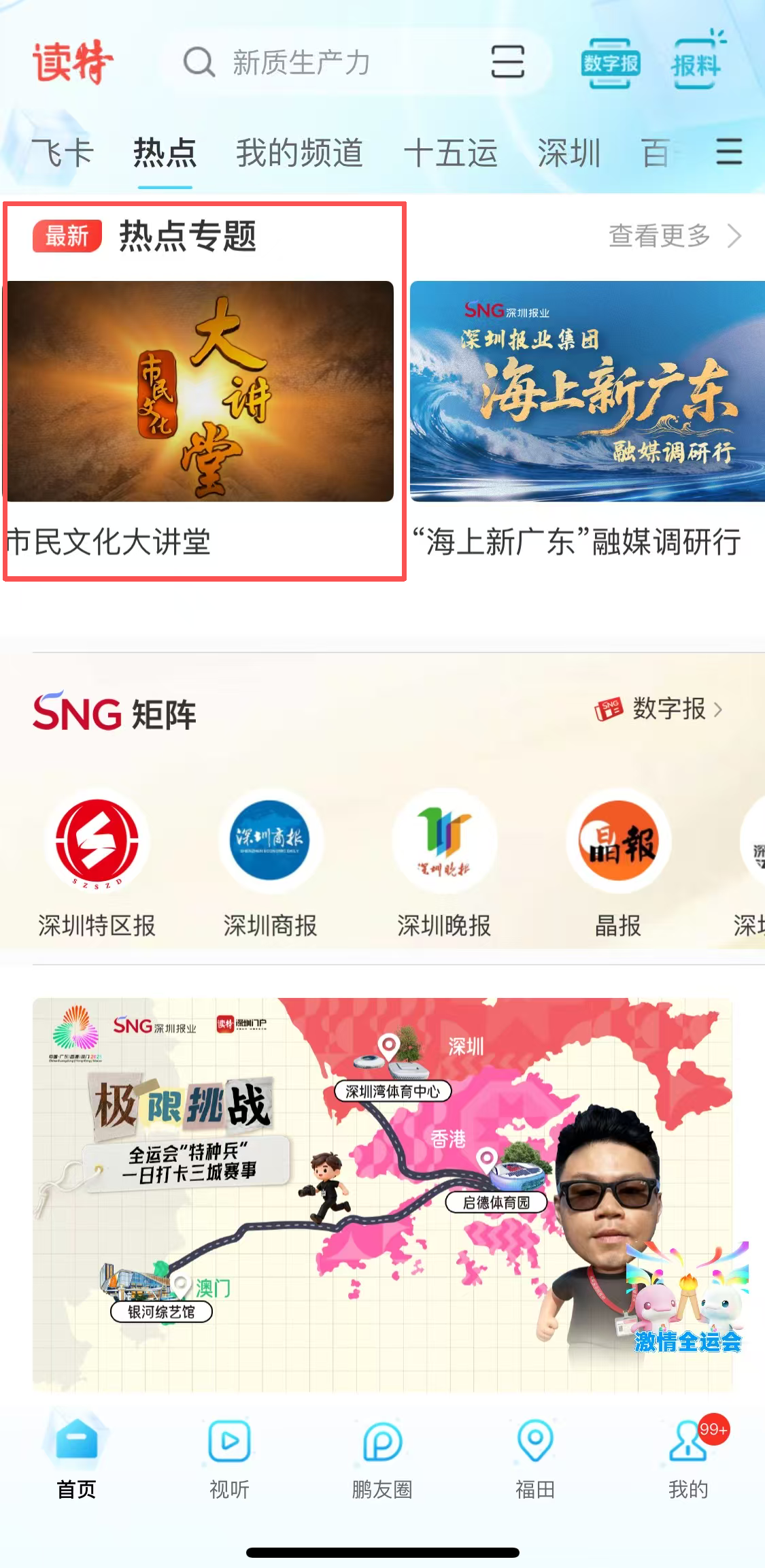 深圳始终坚持文化建设着眼于人、落脚于人,尊重人民主体地位,保障人民文化权益。市民文化大讲堂作为深圳文化品牌的一大支柱,如今通过读特客户端的数字化传播,持续实现“一次讲座、多次传播”,构建传播矩阵,助力广泛触达,每年辐射粤港澳大湾区观众超过5000万人次。