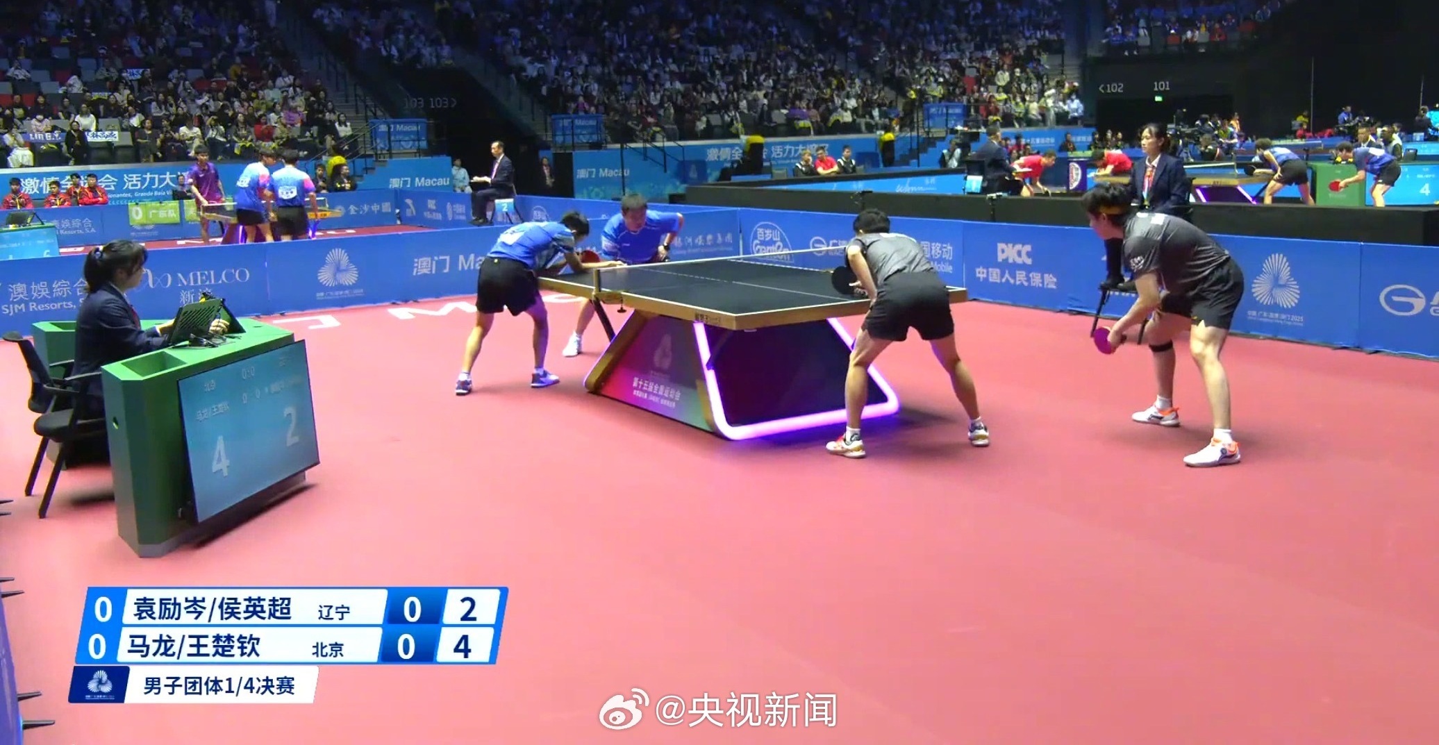 11月18日上午,第十五届全运会乒乓球男团1/4决赛,马龙、王楚钦、黄友政所在的北京队战胜袁励岑、侯英超、徐海东所在的辽宁队,晋级半决赛