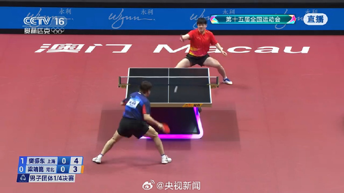 同日进行的第十五届全运会乒乓球男团1/4决赛,樊振东 、许昕 、周恺所在的上海队战胜梁靖崑 、周雨 、梁俨苧所在的河北队,晋级半决赛。