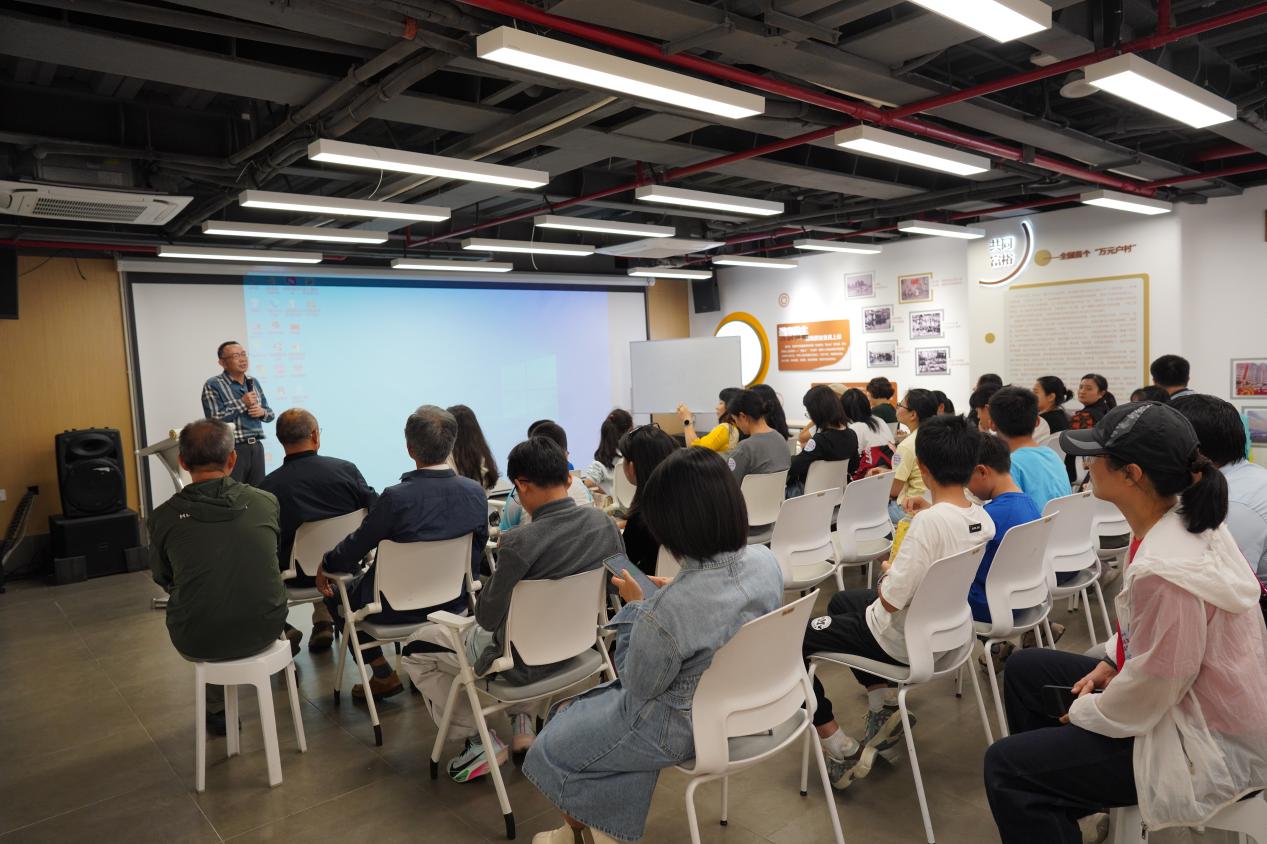 在湖贝老村,湖贝实业股份有限公司董事长张齐心与尹昌龙及专家学者、读者走访了“怀月张公祠”,聆听村长讲述张氏家族自张九龄、张九皋一脉南迁的历史,了解“湖贝”地名的由来——“湖之背”,即湖的背面。祠堂中保留的嘉庆年间牌匾、双天井建筑结构以及村民为保护文物在特殊年代所做的努力,都让读者感受到深圳历史文化的深厚与韧性。随后,大家走进保留“三纵八横”格局的湖贝古村,穿梭于斑驳老墙与窄巷之间,感受数百年来的生活印记。