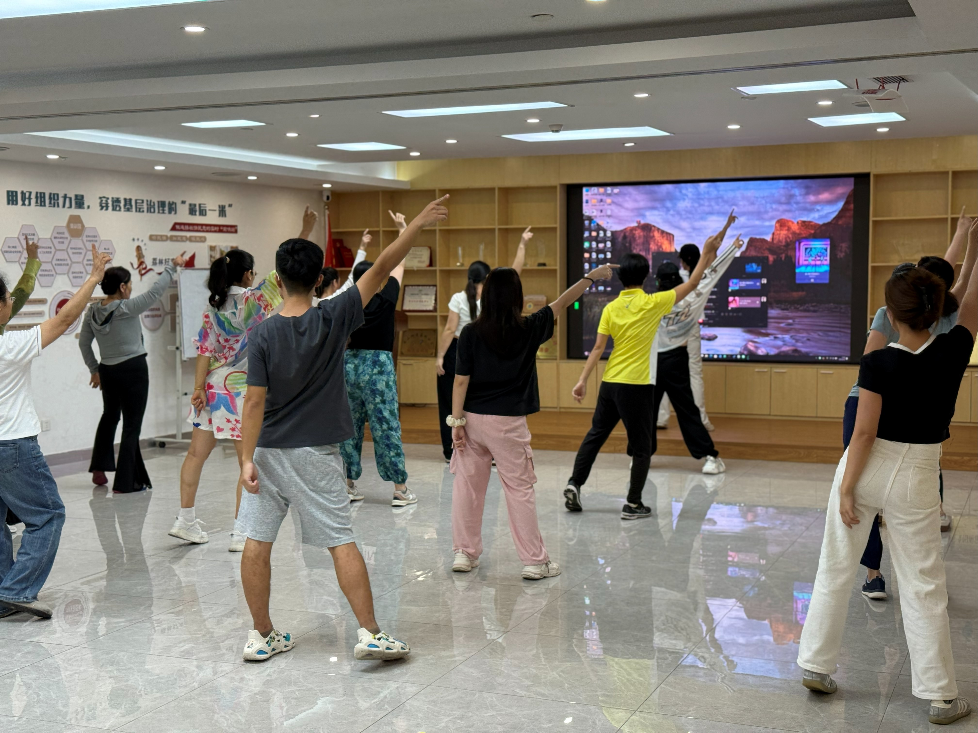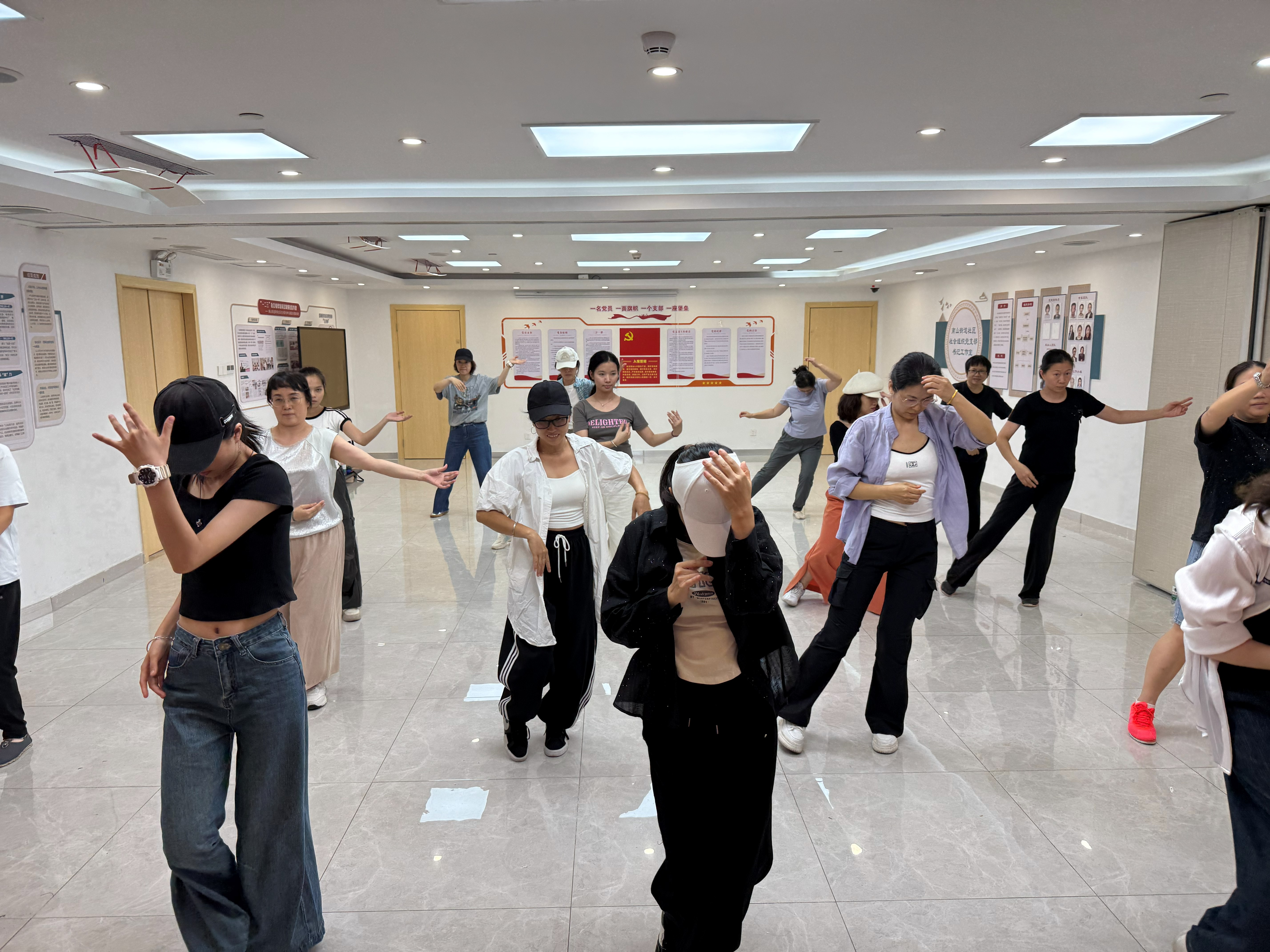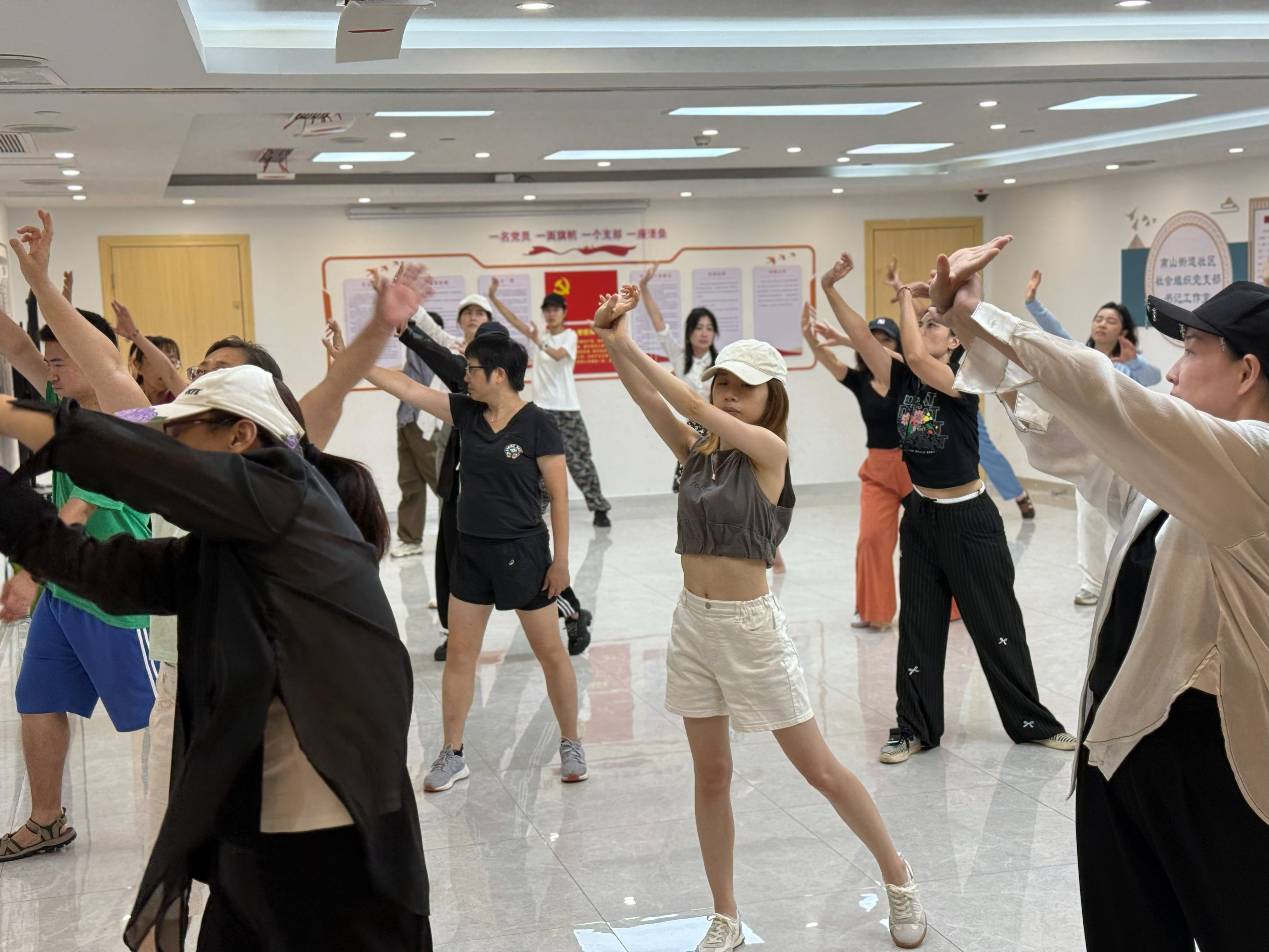 舞蹈不仅是一种健身方式,更是青年表达自我、建立信任的社交载体。“荔影摇摆社”以爵士舞为主题,通过4期课程带领居民从零基础起步,学习舞蹈基本功与编舞片段。活动现场氛围轻松,参与者逐步突破自我,在音乐中展现活力与自信。