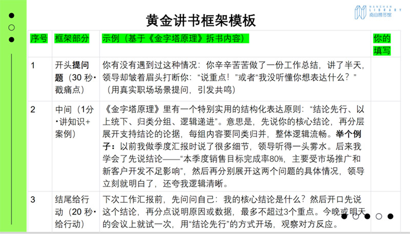 在“如何講”環節,陳蕙茗老師給出一個簡單、實用、立刻能用的“黃金講書框架”,成為現場書友的驚喜。