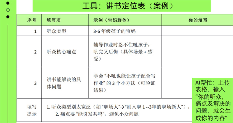 “講什麼”部分,“你我它”原則可以幫助快速判斷一本書是否值得講: