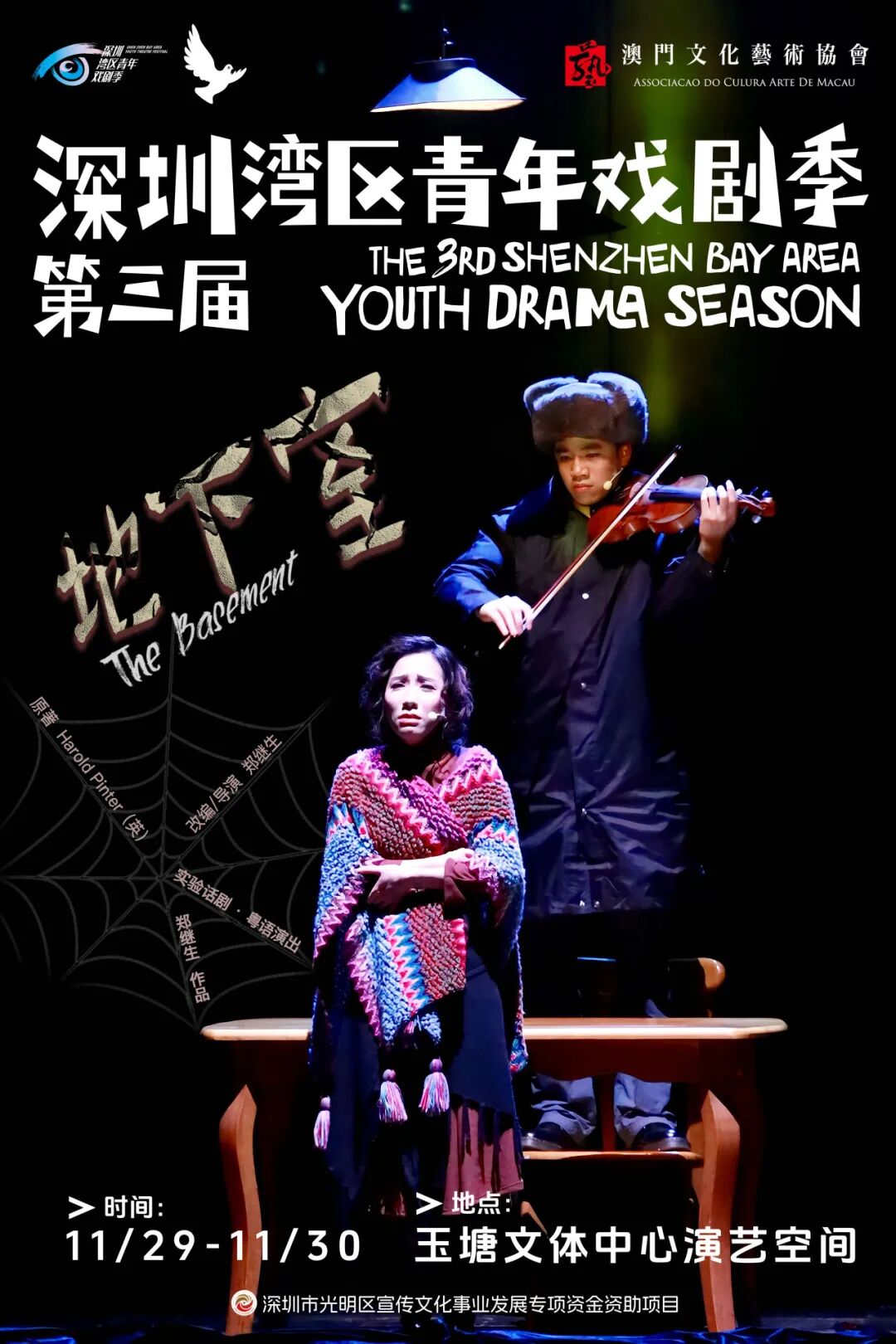 戏剧之创“金鸽蛋”创投剧目《地下室》以及大师班、工作坊、分享会、艺术疗愈、科学戏剧嘉年华、戏剧盛典等均为公益演出和活动。请持续关注「深圳光明」「第三届深圳湾区青年戏剧季」公众号发布的演出、活动信息。