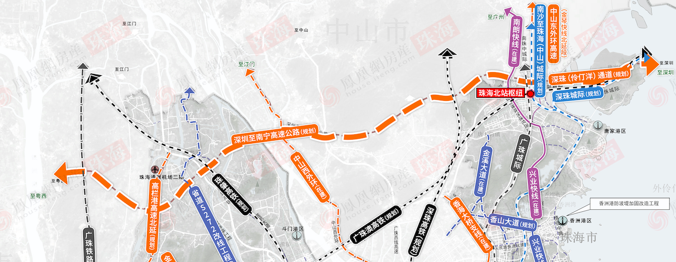 从具体规划来看,深珠通道包含三个重要组成部分:公路通道:规划双向八车道高速公路,连接深圳前海与珠海金鼎;高速铁路:深珠高铁始于深圳西丽站,跨越伶仃洋至珠海,设计时速350公里;城际铁路:深珠城际始于深圳前海站,设计时速200公里。