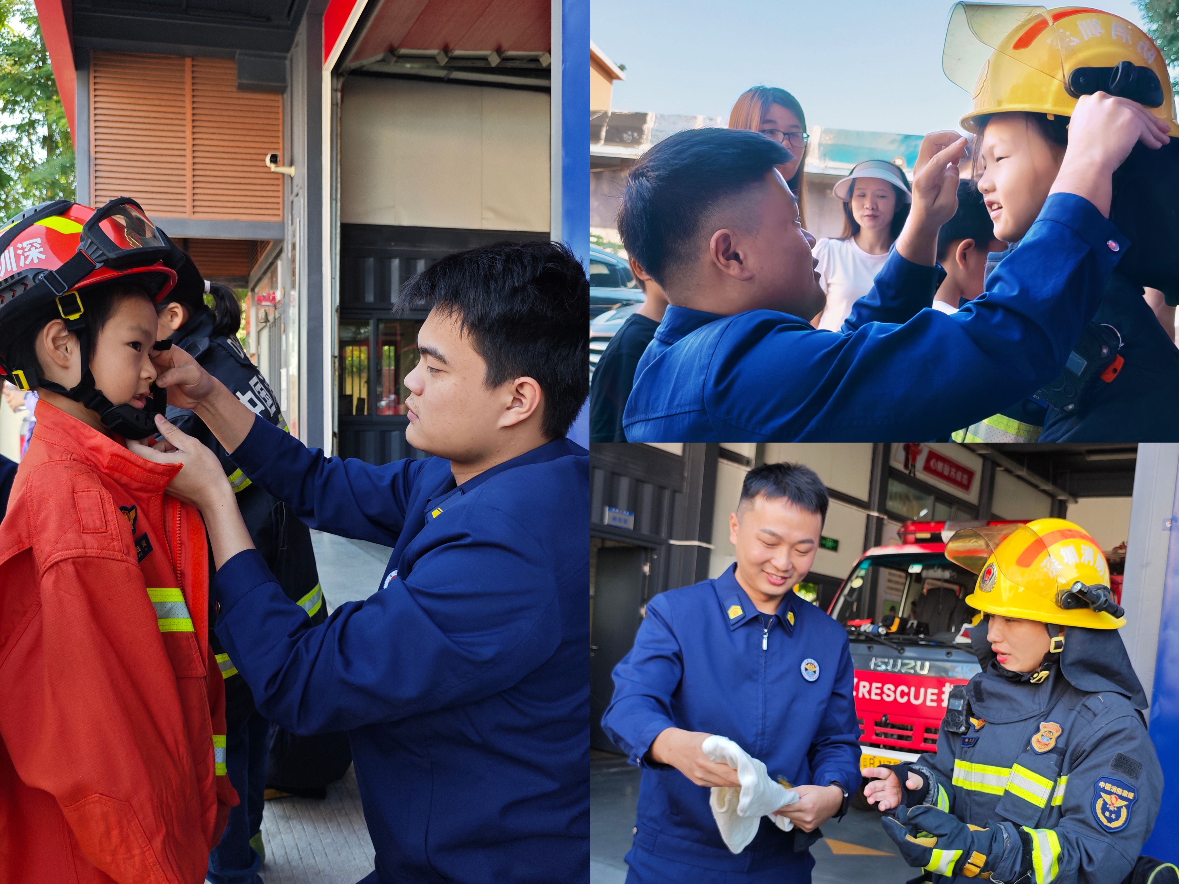 紧接着,消防员演示了消防车的多项功能,包括云梯的升降、水带的快速连接与出水等。这些平日难得一见的场景,引来了阵阵惊叹,也将“敬畏生命、重视安全”的种子深植于心中。活动特别安排了试穿厚重的灭火防护服、佩戴消防头盔,这一环节不仅满足了孩子们和家长的好奇心,更通过切身体验,让他们直观感受到消防员工作的艰辛与崇高。