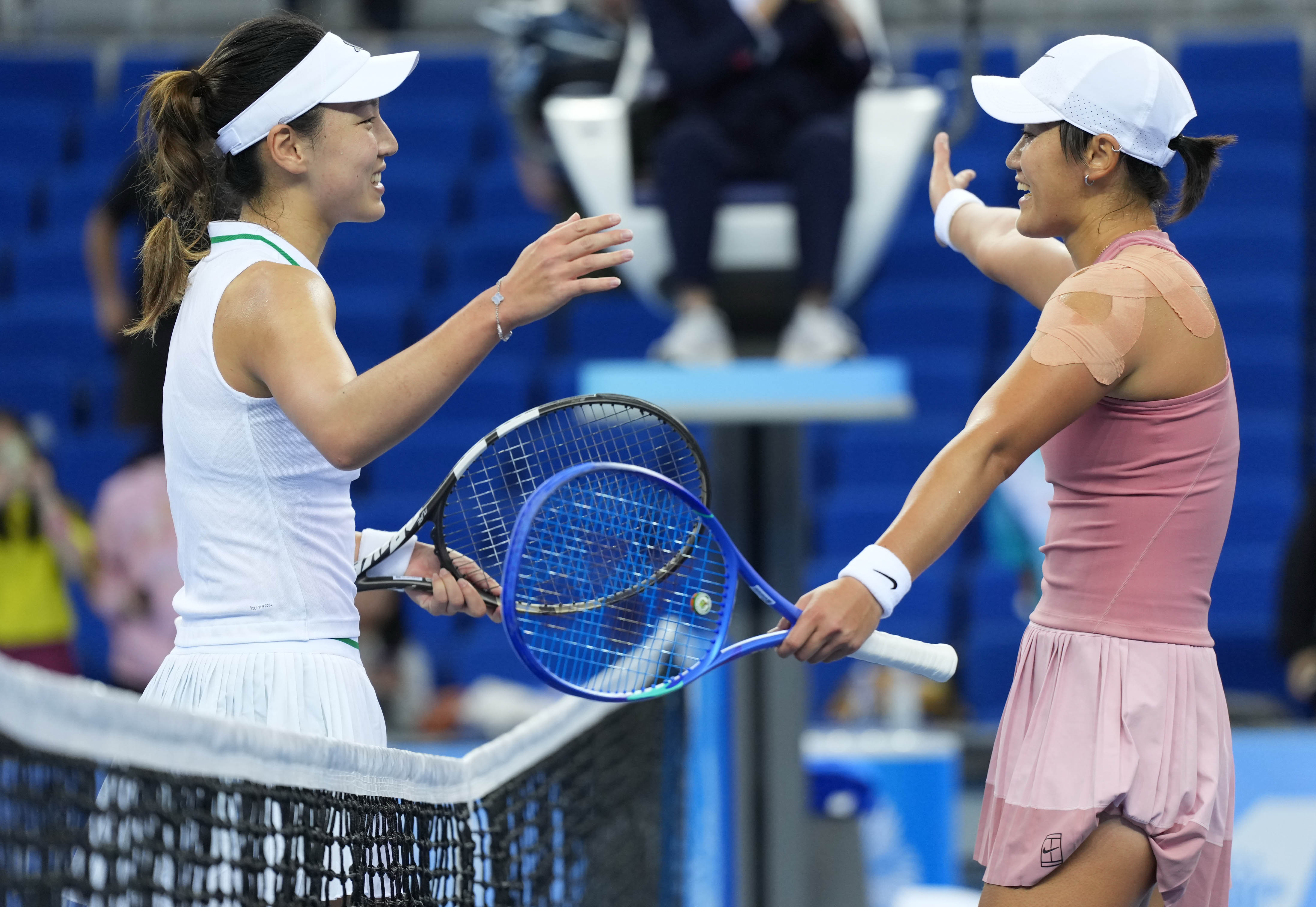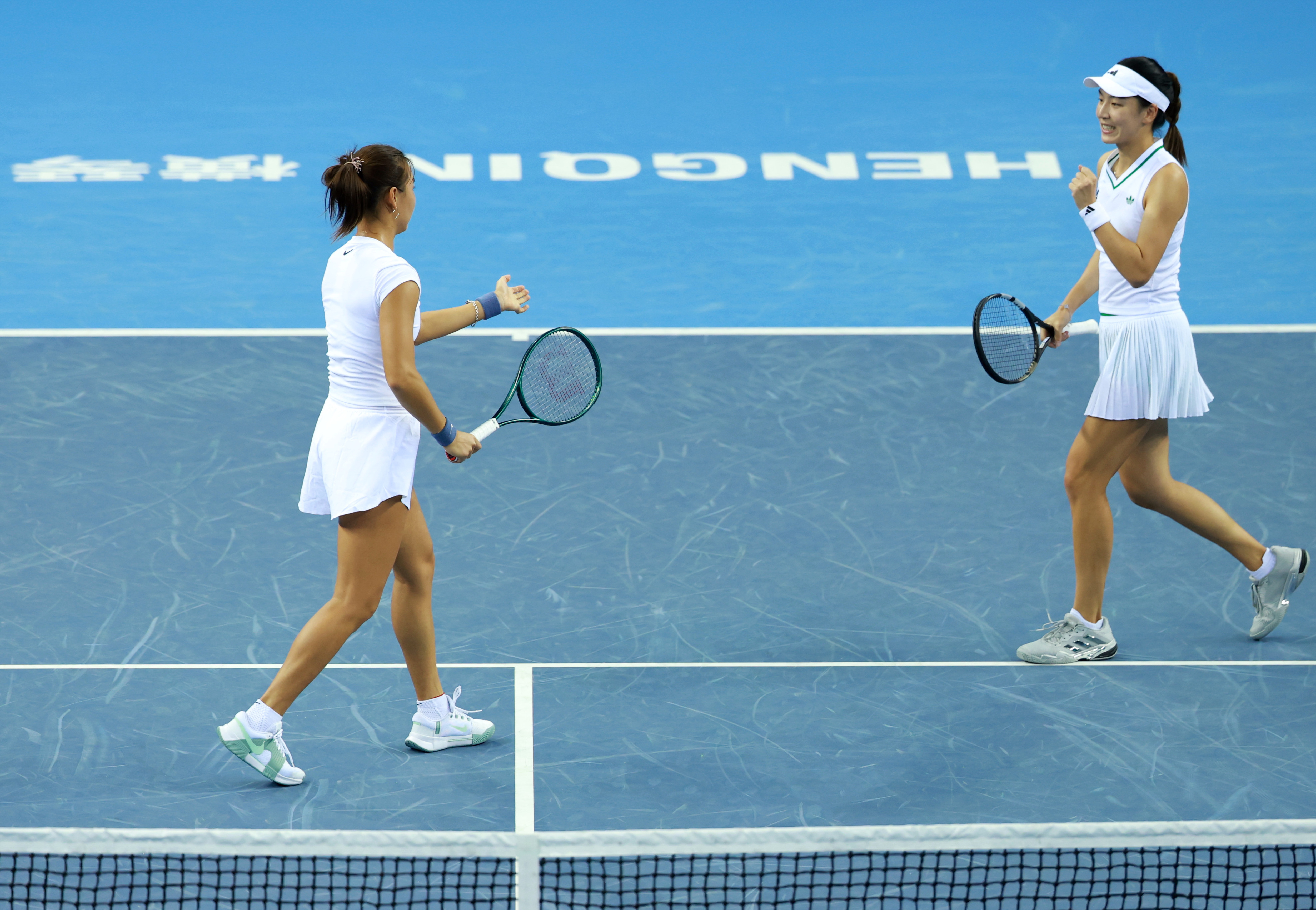 仅仅休息了不到3小时,王欣瑜就搭档袁悦踏上了女双赛场。赛会头号种子汤千慧/郭涵煜给了广东组合很大压力。第一盘比赛,王欣瑜/袁悦在抢七当中告负,总比分0比1落后。尽管已经很疲惫,但是王欣瑜和袁悦都想在本土冲击金牌。第二盘,两人打得更积极主动,很快就完成破发,以6比4扳回一盘,将比赛拖入“抢十”大战。在现场观众的鼓励下,广东组合越战越勇,10比7赢下“抢十”,晋级决赛。