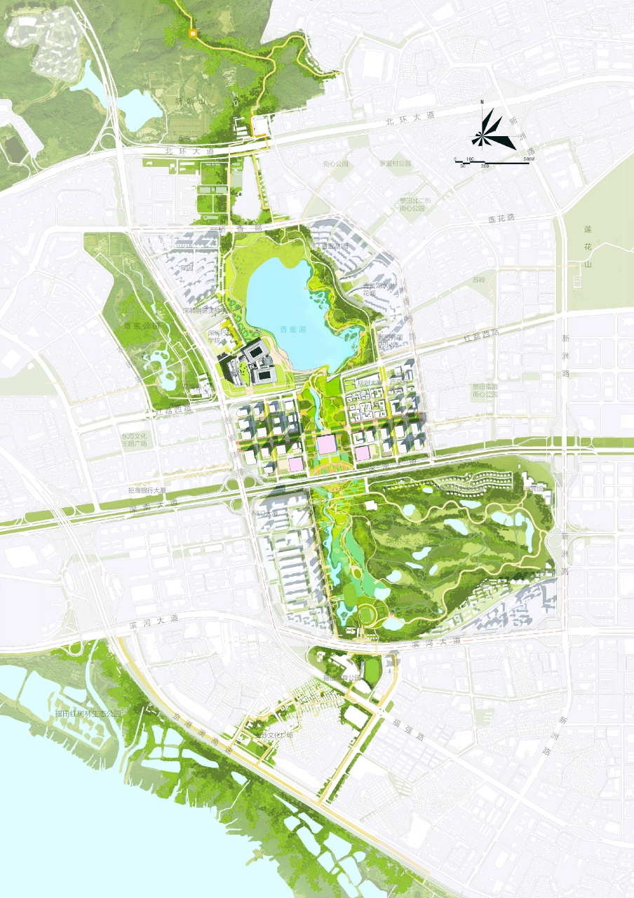 据了解,从香蜜湖片区整体规划来看,这里将打造融汇国际交流、高端金融、文化创意、商业休闲等功能,兼具国际品质、深圳特色的“城市新客厅”。其中,北区定位为公共、开放、生态的城市公园+复合型高端会议交流平台,中区定位为香蜜湖新金融中心,南区则定位为健康主题的运动休闲公园。