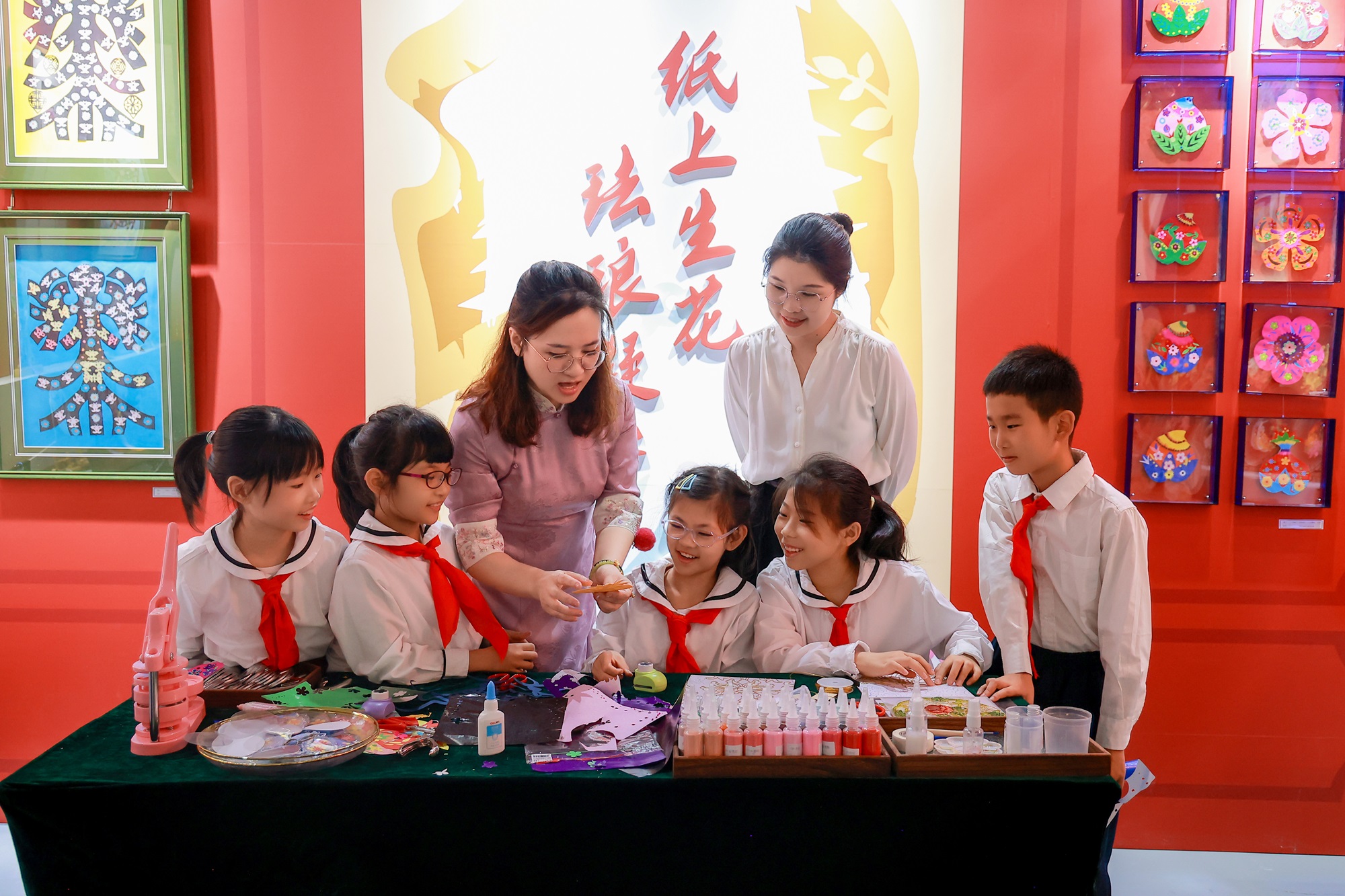 荔园教育集团党委书记、校长黎新风介绍,集团此次有三个工作坊参加展览,包括荔园小学(玮鹏)“字由字在”汉字字理工作坊、荔园小学(百花)“小手创想,大美未来”儿童创意手绘工作坊和笔架山学校的“灯承绘意——非遗油纸灯笼”工作坊。他表示,集团一直非常重视美育工作,除了课堂教学之外,还开展校外活动,包括不同层面的画展、艺术节和校本课程。目前已经在关山月美术馆举行三届专题美术展,此次三个项目都被选中参与展出,也是对集团美术教育的充分肯定。