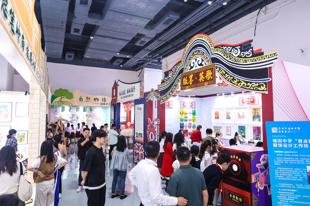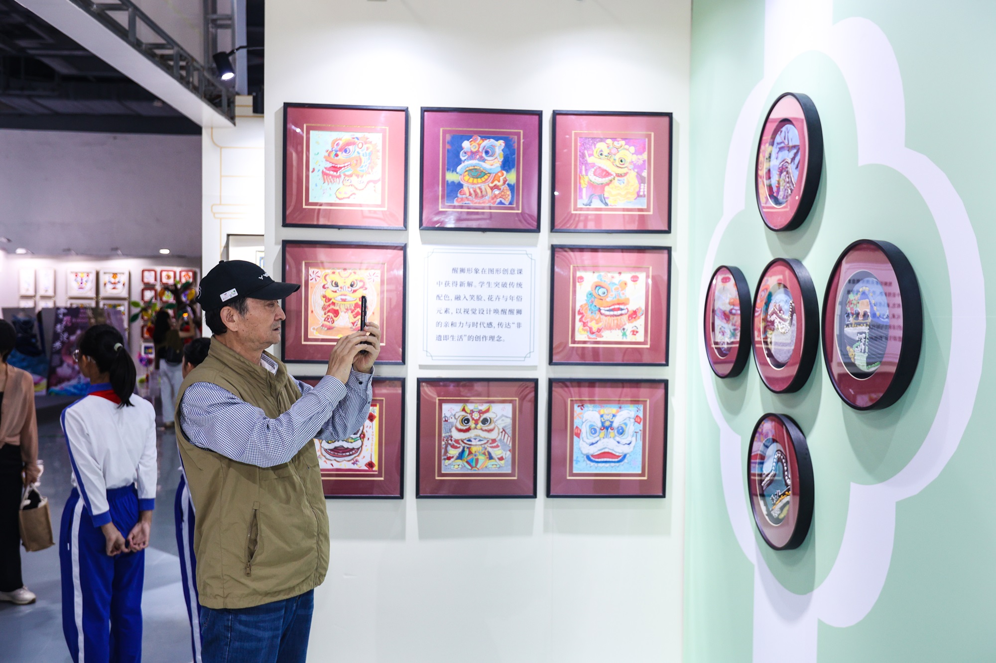 本次展览以“看见童真、绽放童味”为核心,选取全区25个特色艺术实践工作坊,通过展览、互动、体验、讲解等多元形式,集中呈现福田区“课堂教学+实践活动”双轮驱动的美育成果。从水墨丹青到数字插画,从传统剪纸到环保再生艺术,从汉字字理到非遗竹编……各工作坊以童趣视角诠释艺术魅力,既保留传统文化的深厚底蕴,又融入现代创新的灵动表达,立体化展现了福田“童味美术”的教育理念——让艺术回归儿童本真,让每个孩子都能在创作中“表达本我”。