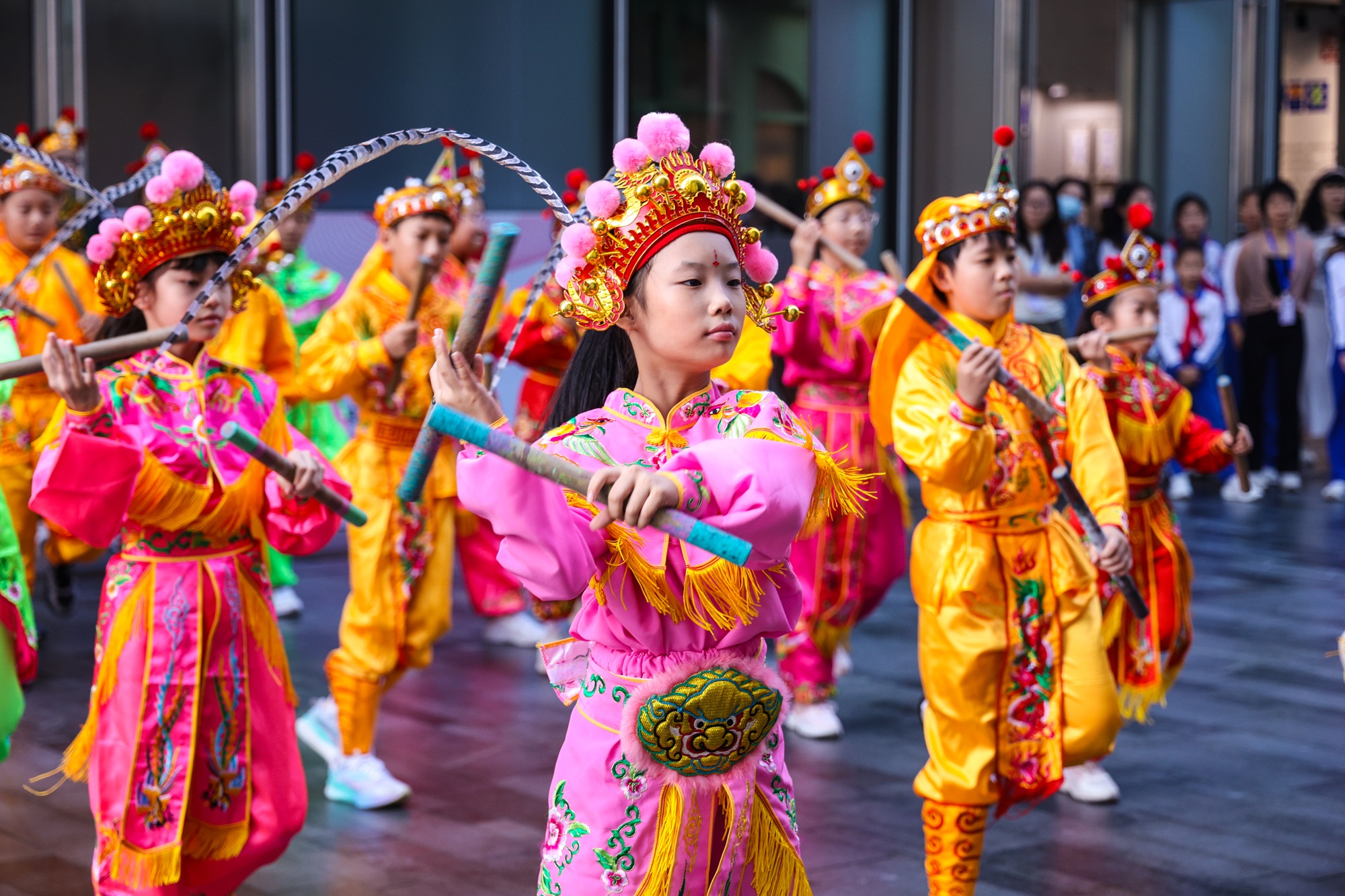 11月17日,“2025年福田区中小学美育成果展示系列活动——学生艺术实践工作坊”在深业上城拉开帷幕。活动以一场气势昂扬的英歌舞表演启幕,来自园岭小学的孩子们用铿锵有力的舞姿展现了福田学子的蓬勃朝气与文化自信。福田区教育局、教科院相关领导,特级教师代表、各校师生及家长代表齐聚一堂,共同见证这一聚焦“童味美术”、彰显区域美育特色的品牌活动。