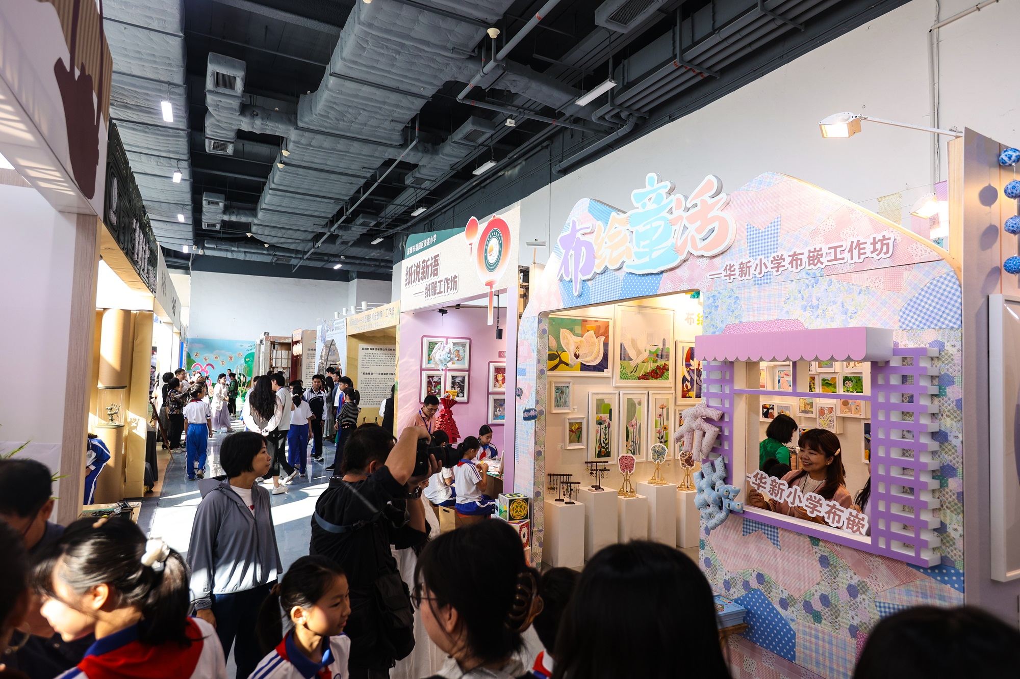 红岭实验小学带来了“毛毛有话说”毛毡创意工坊,以“艺术治愈心灵”为初衷,孩子们用羊毛湿毡、干毡技法创作出云朵、动物、植物等柔软立体的作品。通过指尖的温度传递幸福与温暖,工坊将美育与情感教育、生命教育结合,成为校园中治愈心灵的“艺术角落”。校长臧秀霞表示,学校开办了20多个学生社团,此次亮相展览的两个项目都是便于现场体验的项目,希望孩子们在动手体验中感受艺术的魅力。