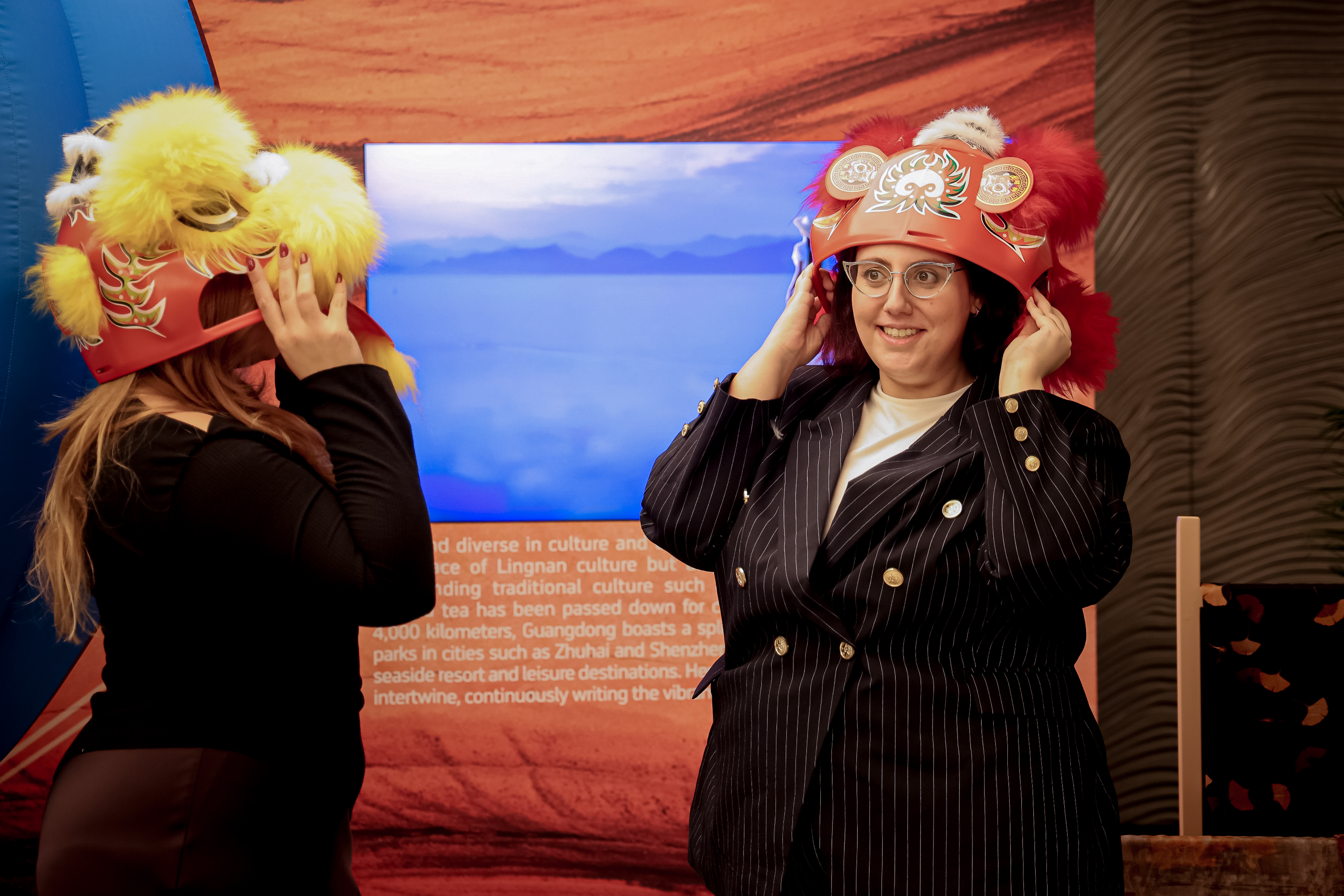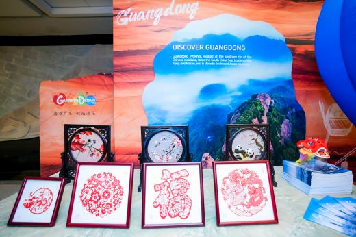 “发现精彩广东”展区同步成为大会焦点。展区循环播放文旅宣传视频,醒狮摆件、香云纱、粤绣、剪纸等特色展品直观呈现岭南工艺精髓,多语言《广东入境游指南》为全球游客提供实用参考。传统元素与现代旅游资讯的碰撞,让海外嘉宾沉浸式感受广东“古今交融、中西贯通”的特质,搭建起文化交流与合作对接的桥梁。