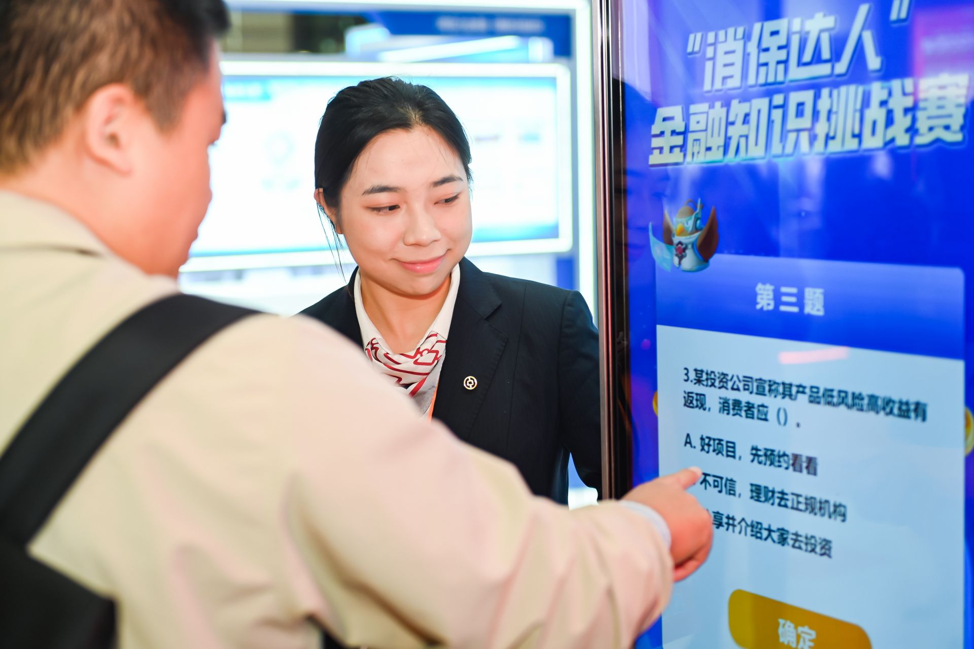 除硬核的金融服务展示外,展区内的“智慧消保互动站”同样吸引大量观众参与。通过“消保小剧场”反诈微电影、互动答题闯关等寓教于乐的形式,中国银行深圳市分行将金融知识普及与消费者权益保护工作落到实处,生动诠释了“金融为民”的服务理念。