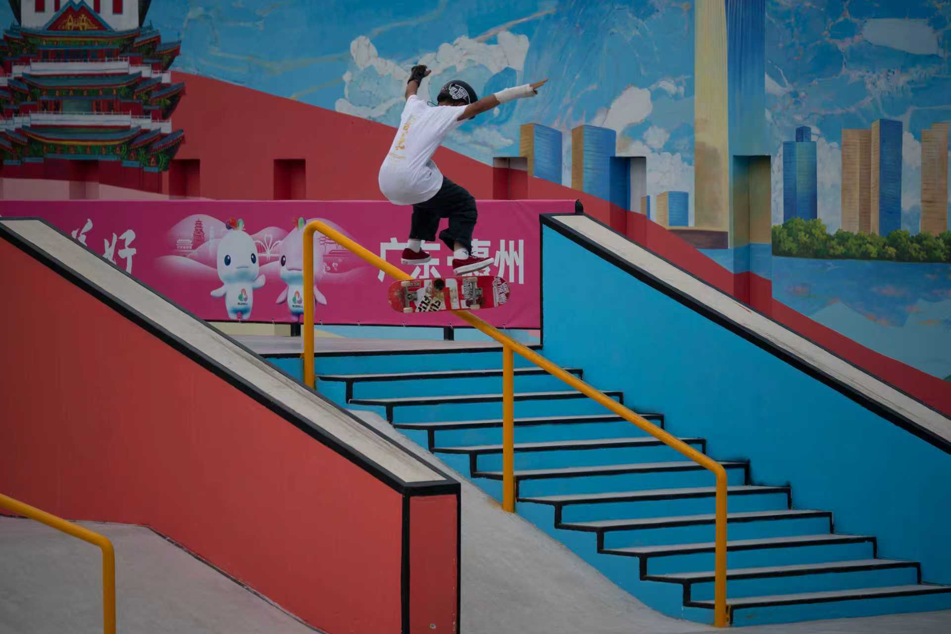 林泓豪在十五运会滑板男子街式比赛现场。受访者供图