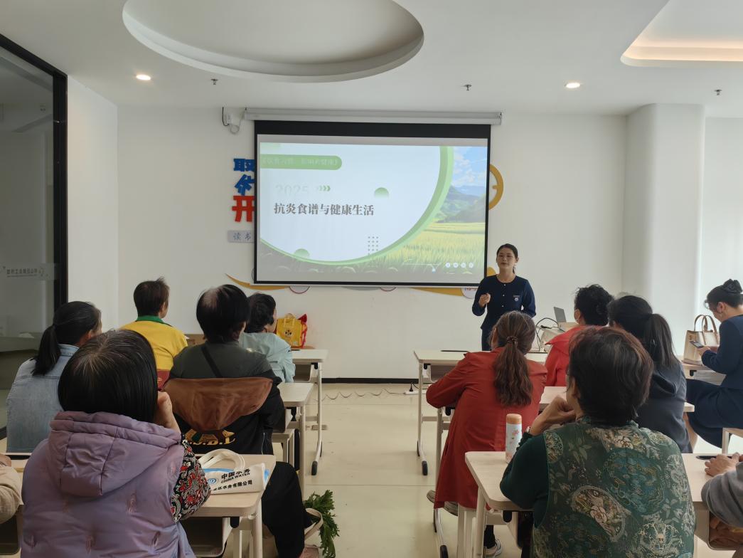 活动内容涵盖抗炎营养、脾胃同调、轻排毒和抗敏食谱四个部分。营养师从慢性炎症与健康的关系入手,详细讲解了如何通过日常饮食调理身体,并介绍了天然食材的排毒功效和实用的抗敏食谱方案。现场还设置经验分享和互动问答环节,帮助居民们在实践中学会健康饮食知识。
