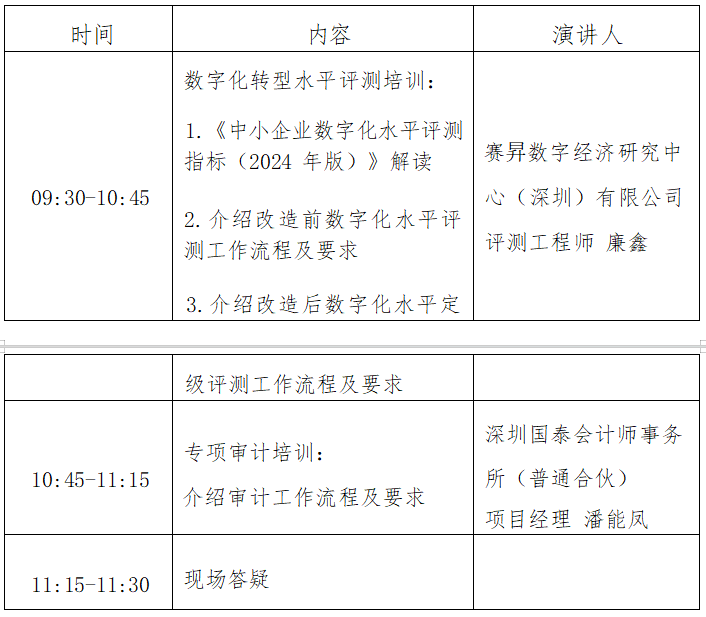 1.主题:深圳市中小企业数字化转型评测工作与审计流程宣贯会