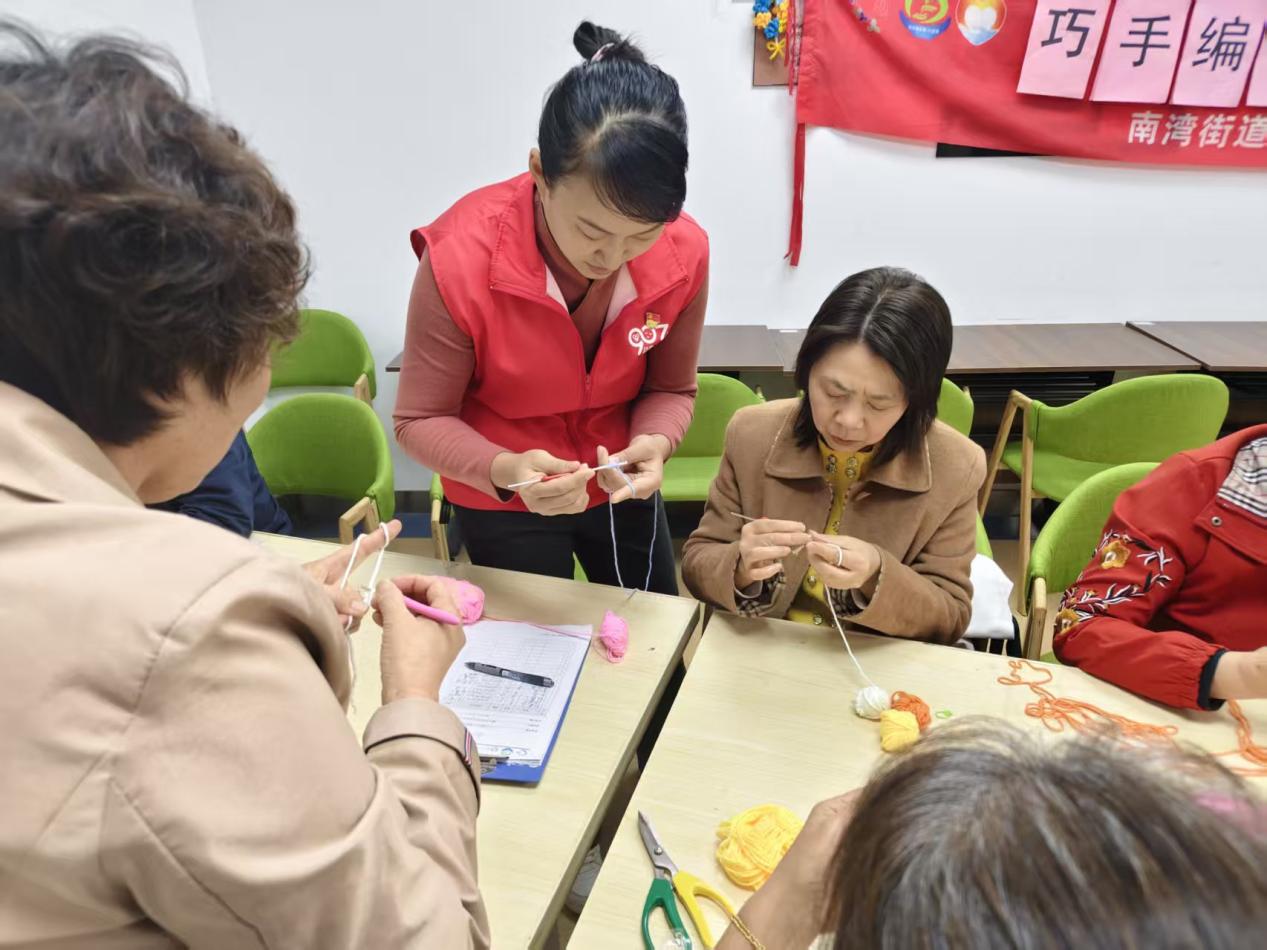 为丰富社区长者精神文化生活,传承传统手工艺,11月19日下午,南湾街道康乐社区夕阳红组织开展“巧手编织”杯垫钩织学习活动,十余名社区长者欢聚一堂,在针线间体验乐趣、传递温情。